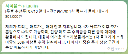 ▲7월 24일 알테오젠 1차 목표가 돌파