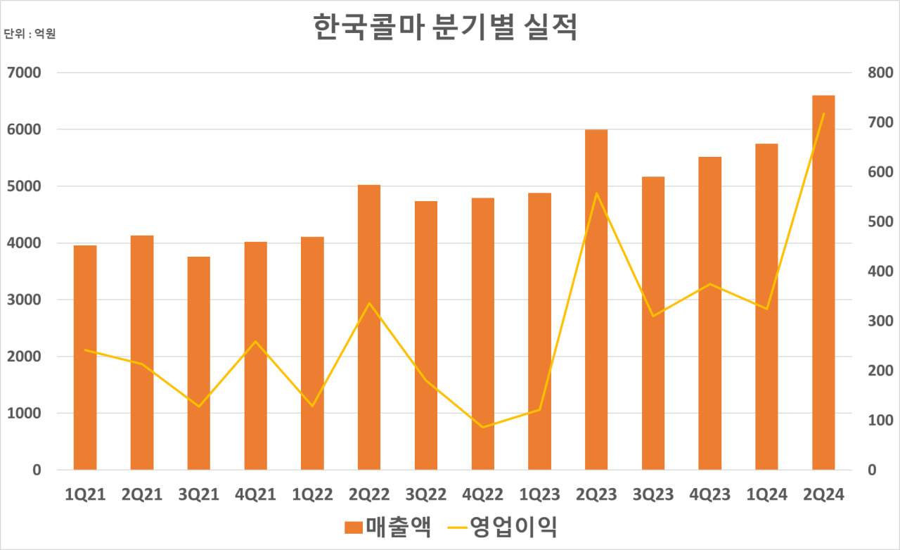 ※ 국내를 대표하는 화장품 ODM 업체 중 하나인 한국콜마가 2분기 견조한 호실적을 발표했습니다. 올해 2분기에 벌어들인 영업이익(717억원)은 작년 연간 영업이익(1361억원)의 53% 수준입니다. 3개월 동안 벌어들인 이익이 작년 연간 영업이익의 절반을 넘는 것이죠. 계속 미드싱글 수준에 머무르던 분기 영업이익률도 두 자릿수인 10.9%로 진입하며 업황 호조를 증명했습니다.