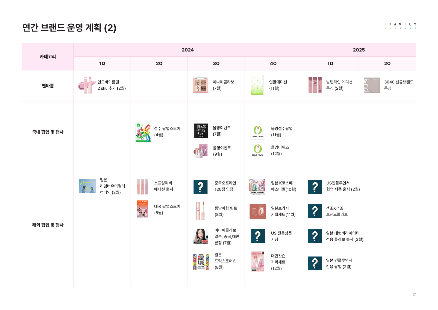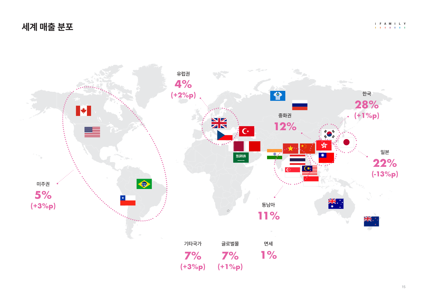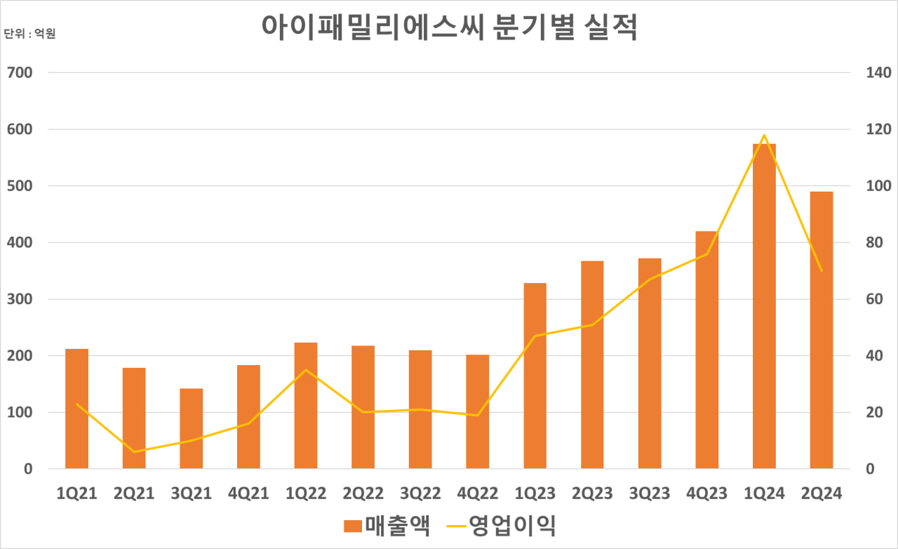 ※ 아이패밀리에스씨가 다소 부진한 실적을 발표했습니다. 사실, 2분기 실적 부진은 어느정도 예고되어 있었는데요. 1분기 일본 신규 유통 채널(돈키호테) 입점으로 매출이 급성장한 후 2분기는 재고를 소진하는 기간이 있었습니다. 3분기부터는 다시 발주가 확대되고 있고, 립 및 아이 신제품 런칭 효과에 더해 미국과 동남아 등 진출 국가가 확대되며 분기 실적 고성장세가 재개될 것으로 전망합니다. 특히 하반기 미국 전용 제품 런칭이 예정되어 있습니다. 2분기 실적이 연간 실적 저점일 것으로 보고 있습니다.