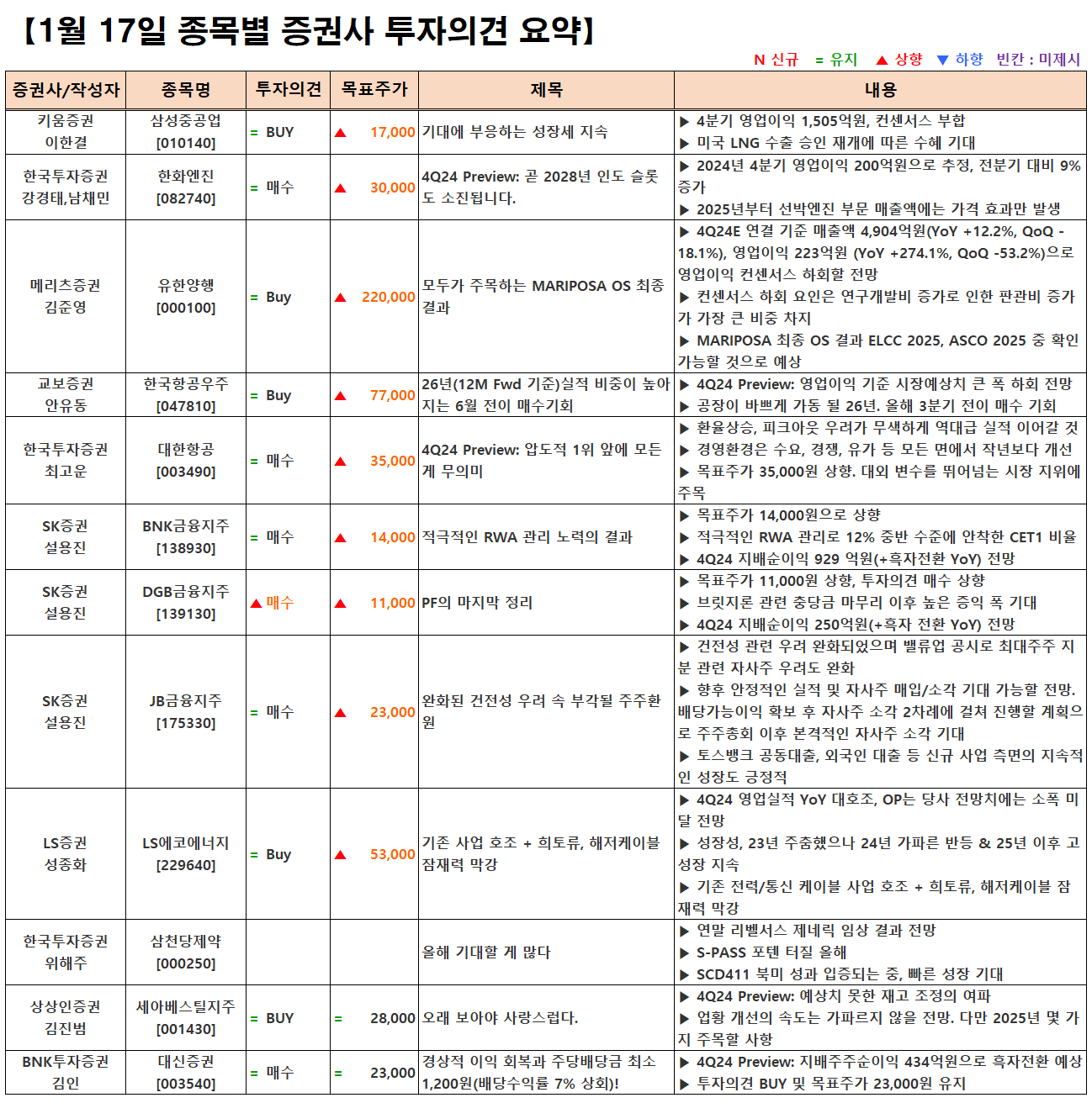 (이미지 내 글자가 잘 보이지 않으면 웹브라우저, 휴대폰 화면을 ‘가로화면’으로 보시거나, 이미지를 클릭하면 확대해서 보실 수 있습니다.) 글 내비게이션 [01.17] 증시 개장 전 시황&오늘의 대응 전략 [01.17] 증시 마감시황&외국인/기관 순매수 상위 종목[트럼프 트레이드(시추), 유리기판, 반도체 등]
