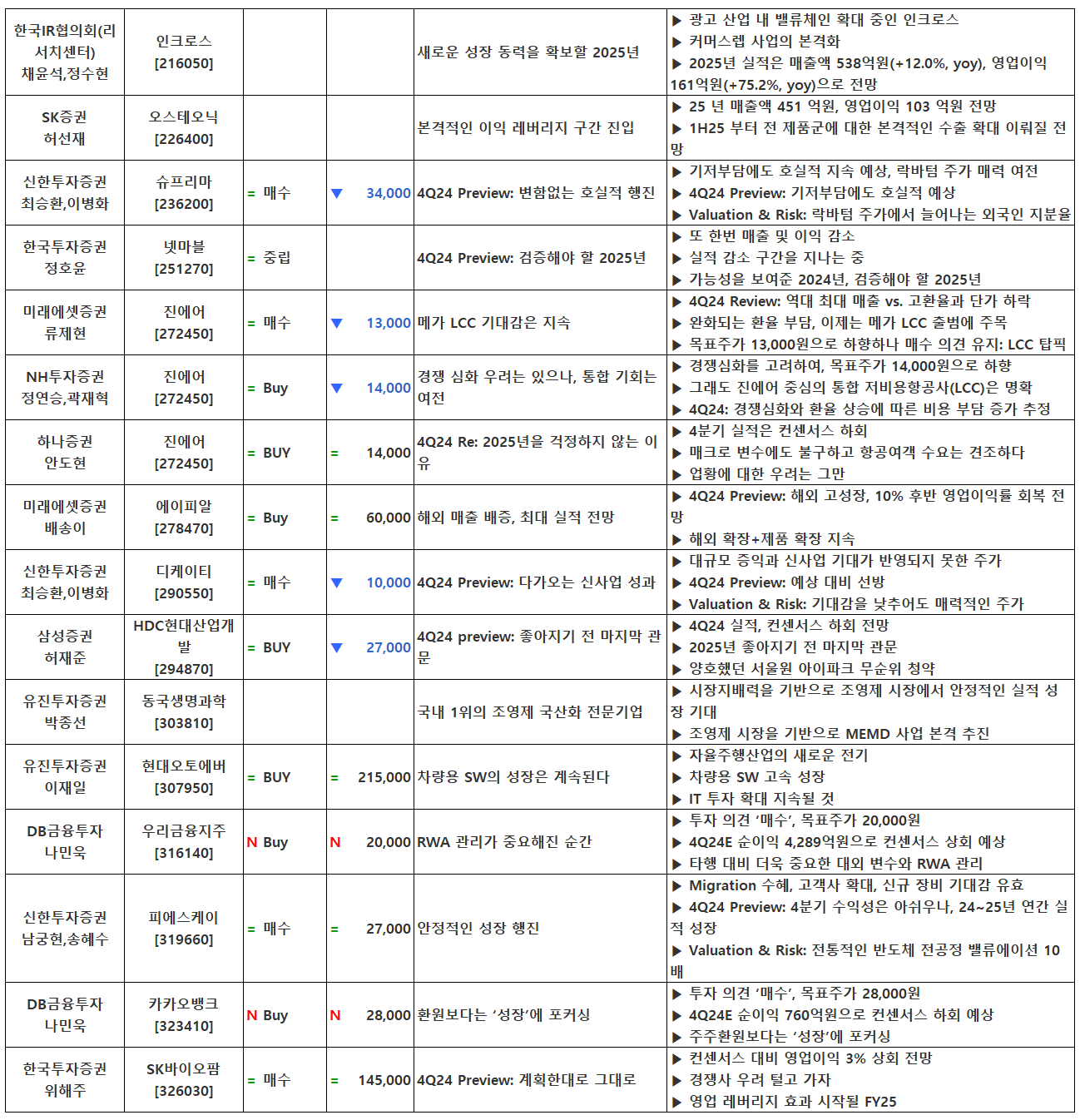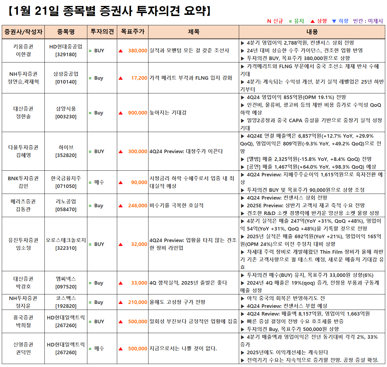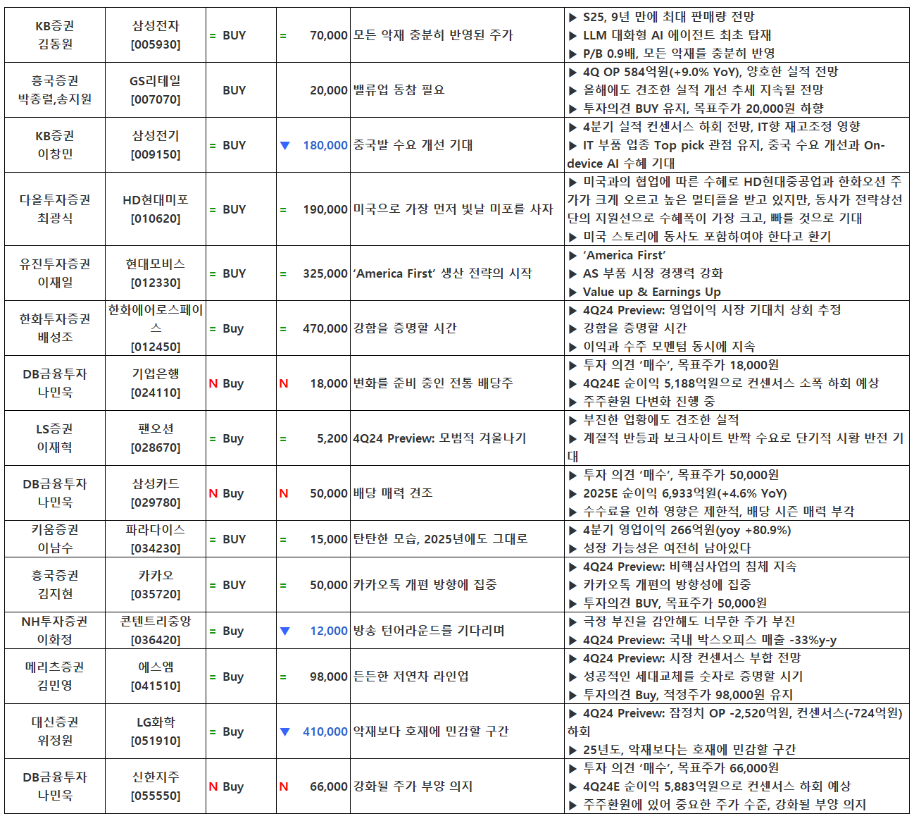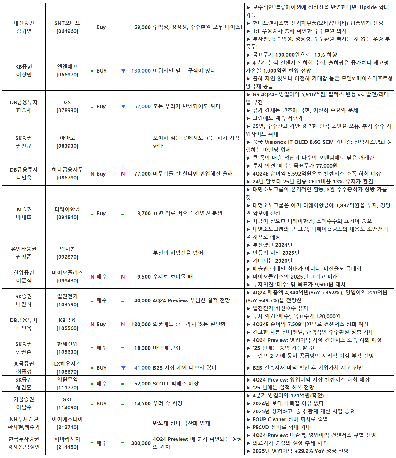(이미지 내 글자가 잘 보이지 않으면 웹브라우저, 휴대폰 화면을 ‘가로화면’으로 보시거나, 이미지를 클릭하면 확대해서 보실 수 있습니다.) 글 내비게이션 2024년 4분기 실적 발표 특징주(1월 20일 기준) [01.21] 증시 마감시황&외국인/기관 순매수 상위 종목[로봇, 데이터센터, 트럼프 트레이드(조선, 시추)]