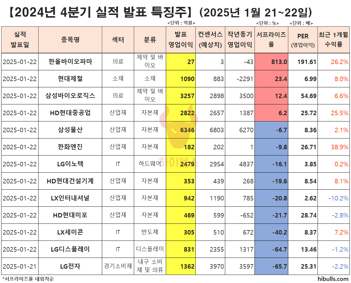 2024년 4분기 실적 발표 특징주(1월 21~22일)