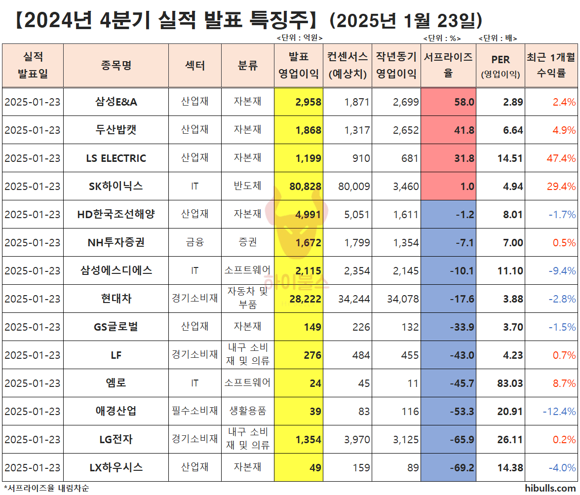 어닝 부합 : SK하이닉스, HD한국조선해양