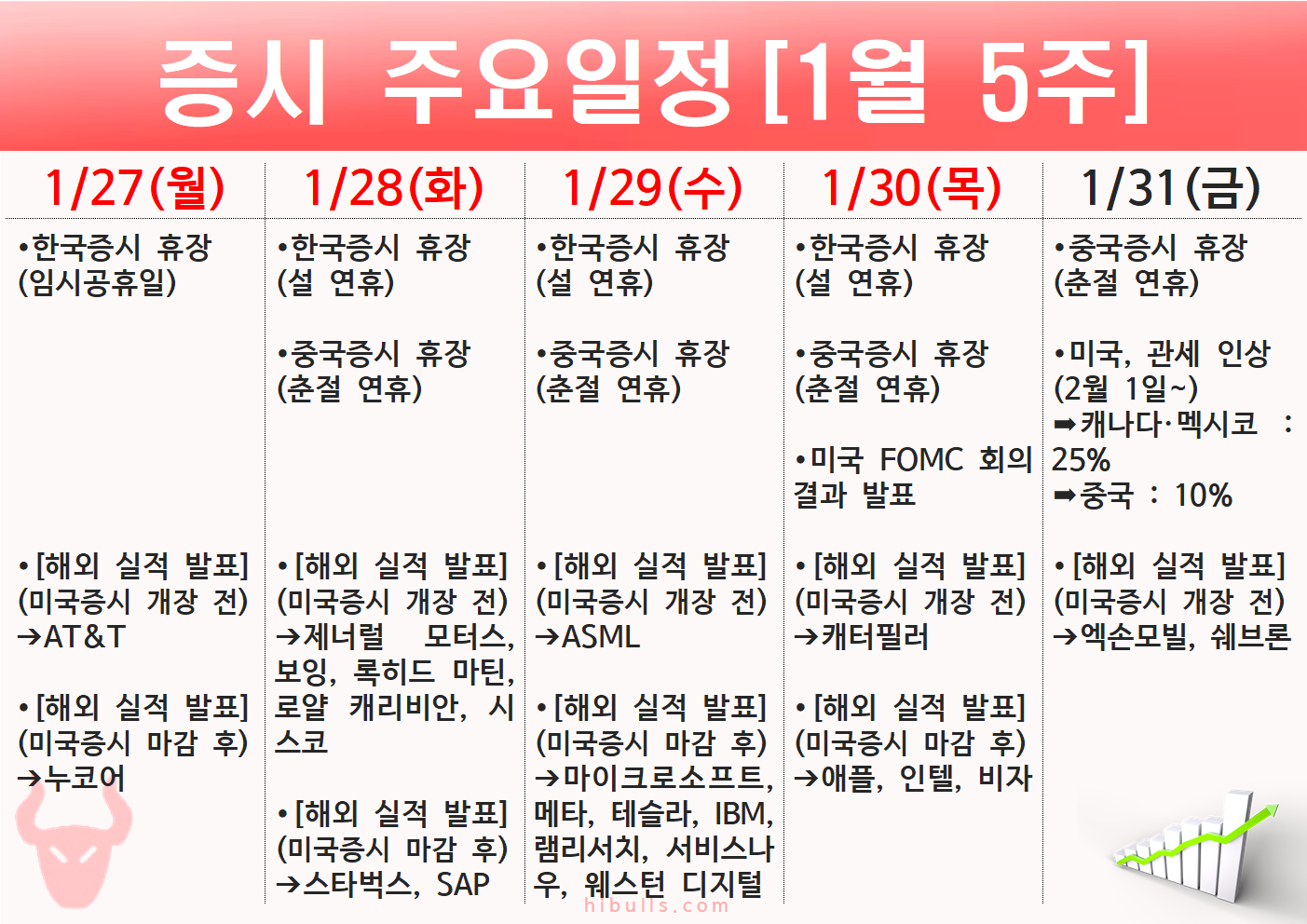 글 내비게이션 [01.24] 증시 마감시황&외국인/기관 순매수 상위 종목[트럼프 트레이드(통신장비, 시추, 원전), 데이터센터 등] [01.31] 증시 개장 전 시황&오늘의 대응 전략