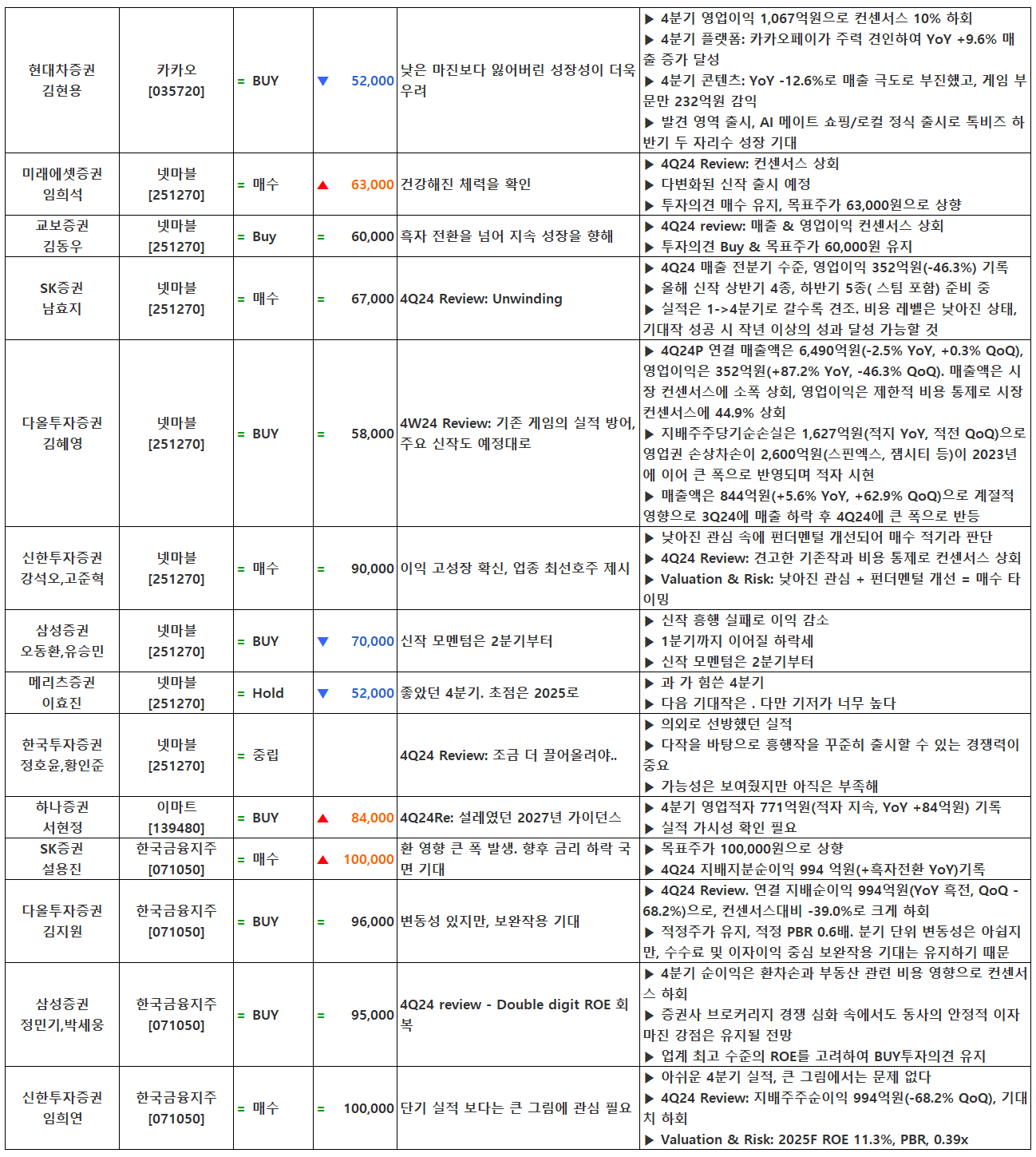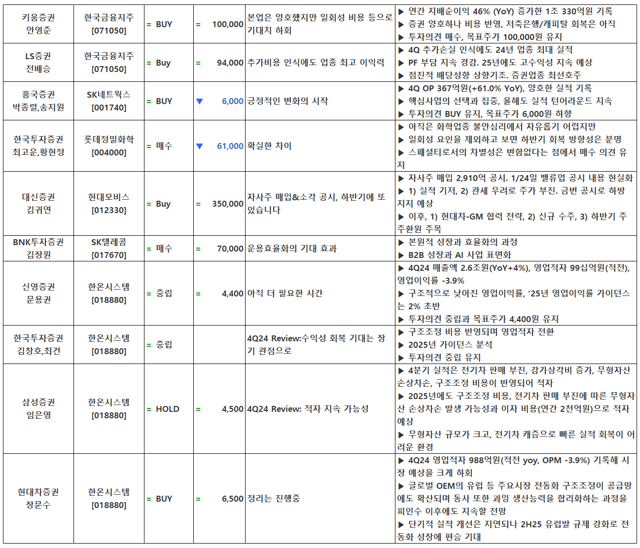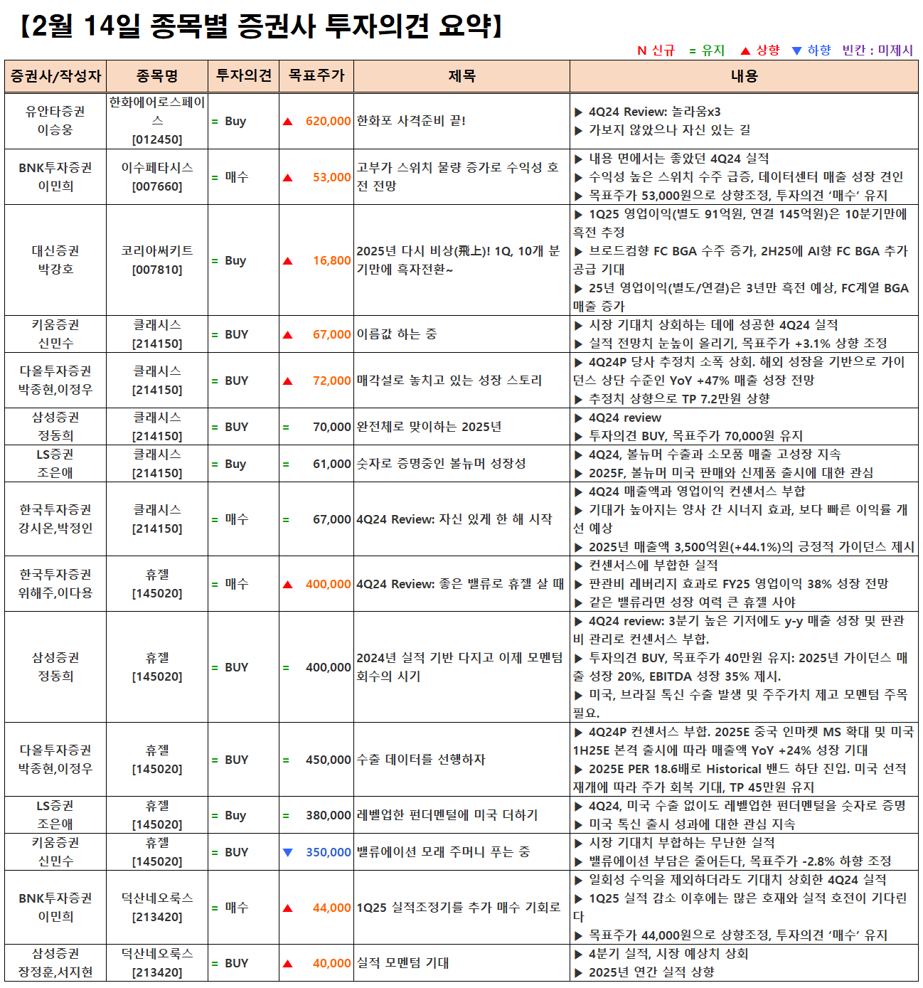 (이미지 내 글자가 잘 보이지 않으면 웹브라우저, 휴대폰 화면을 ‘가로화면’으로 보시거나, 이미지를 클릭하면 확대해서 보실 수 있습니다.) 글 내비게이션 2024년 4분기 실적 발표 특징주(2월 13일) [02.14] 증시 마감시황&외국인/기관 순매수 상위 종목(반도체, 로봇, 원전 등)