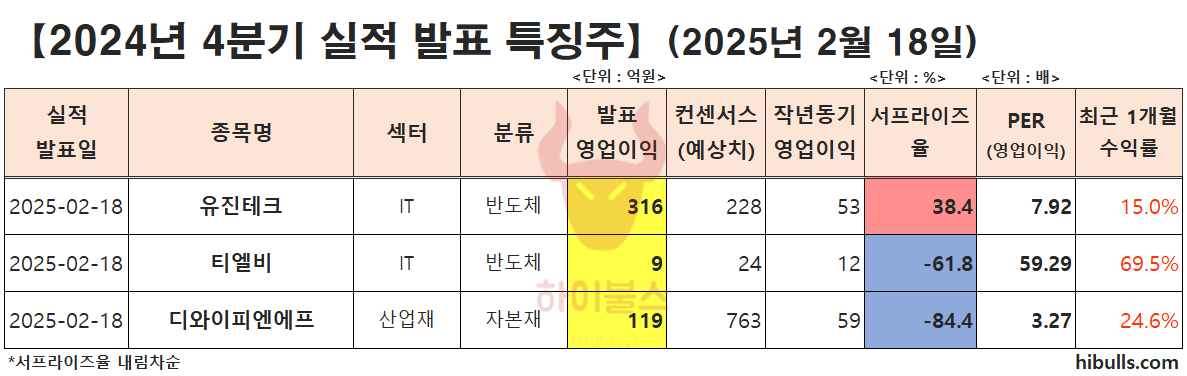 2024년 4분기 실적 발표 특징주(2월 18일)