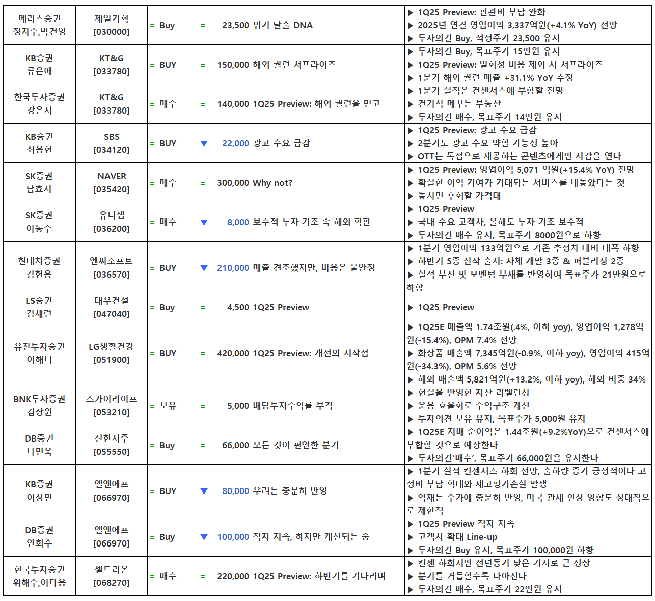 (이미지 내 글자가 잘 보이지 않으면 웹브라우저, 휴대폰 화면을 ‘가로화면’으로 보시거나, 이미지를 클릭하면 확대해서 보실 수 있습니다.) 글 내비게이션 [04.10] 증시 개장 전 시황&오늘의 대응 전략 [04.10] 증시 마감시황 및 오늘의 특징주/특징섹터