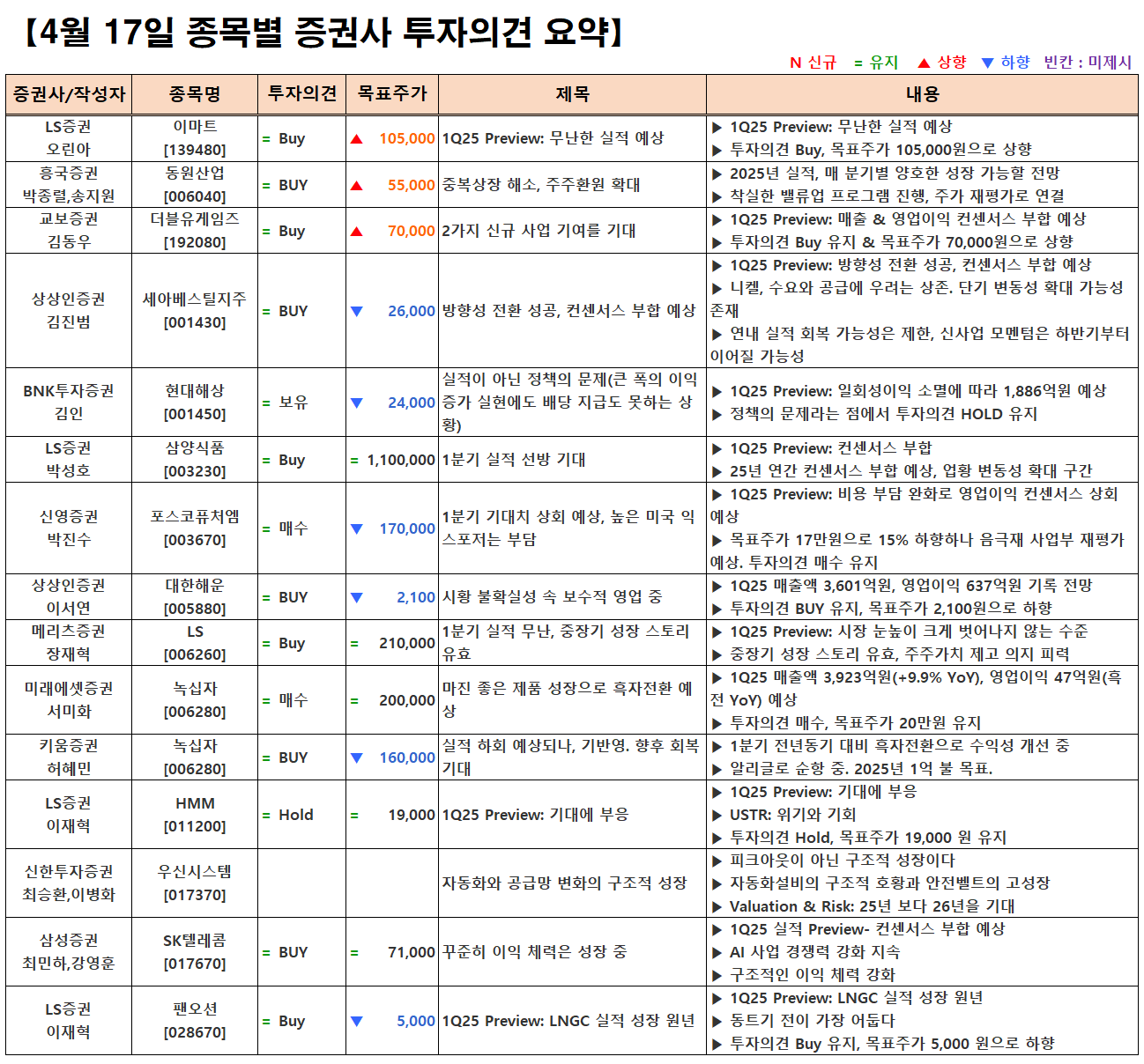 (이미지 내 글자가 잘 보이지 않으면 웹브라우저, 휴대폰 화면을 ‘가로화면’으로 보시거나, 이미지를 클릭하면 확대해서 보실 수 있습니다.) 글 내비게이션 [04.17] 증시 개장 전 시황&오늘의 대응 전략 [04.17] 증시 마감시황 및 오늘의 특징주/특징섹터