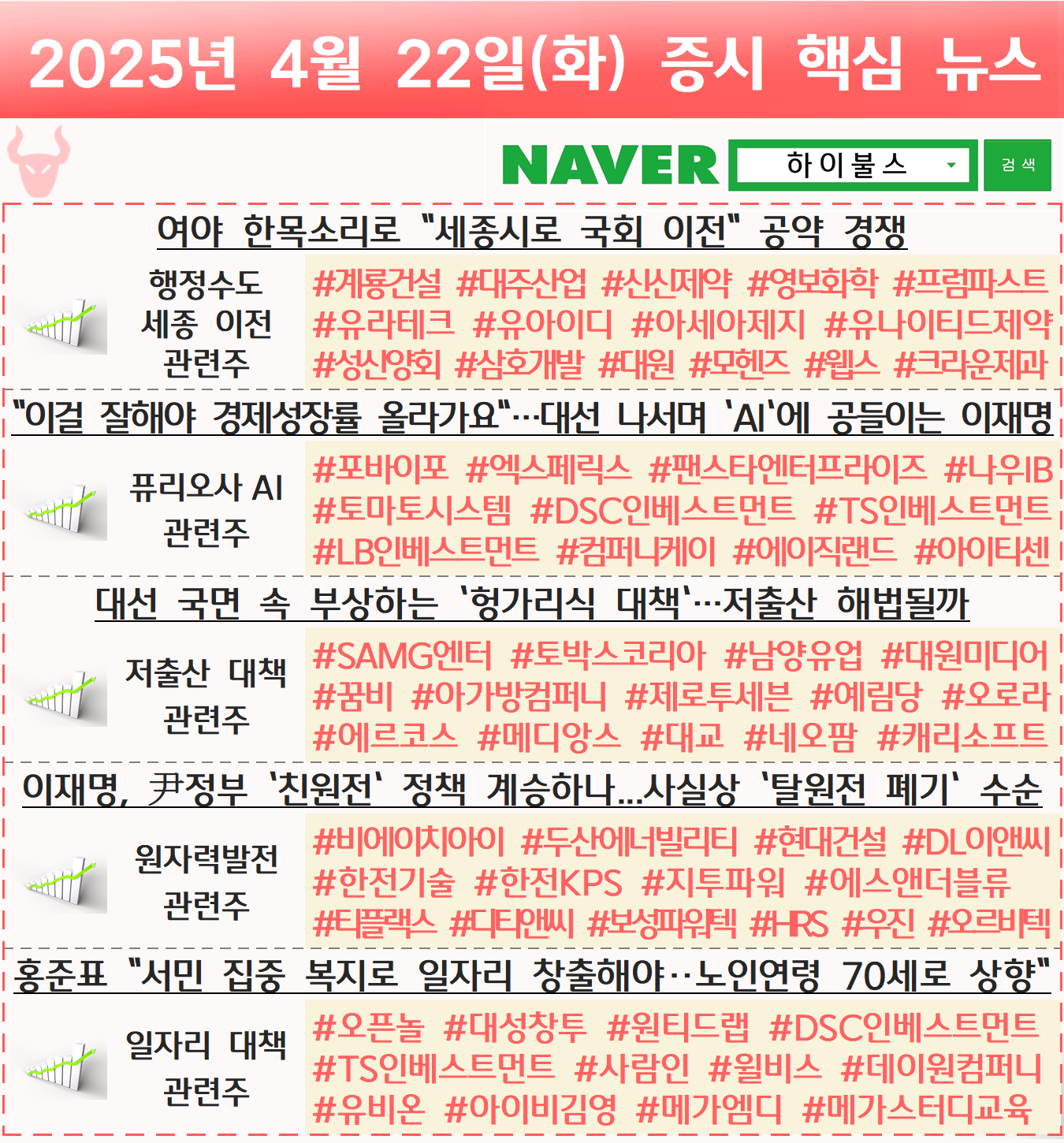 행정수도 세종시 이전 관련주, 세종시 관련주, 행정수도 이전 관련주, 퓨리오사AI 관련주, 저출산 대책 관련주, 출산장려정책 관련주, 저출산 관련주, 원자력발전 관련주, 원전 관련주, 일자리대책 관련주, 일자리 대책 관련주, 일자리 관련주