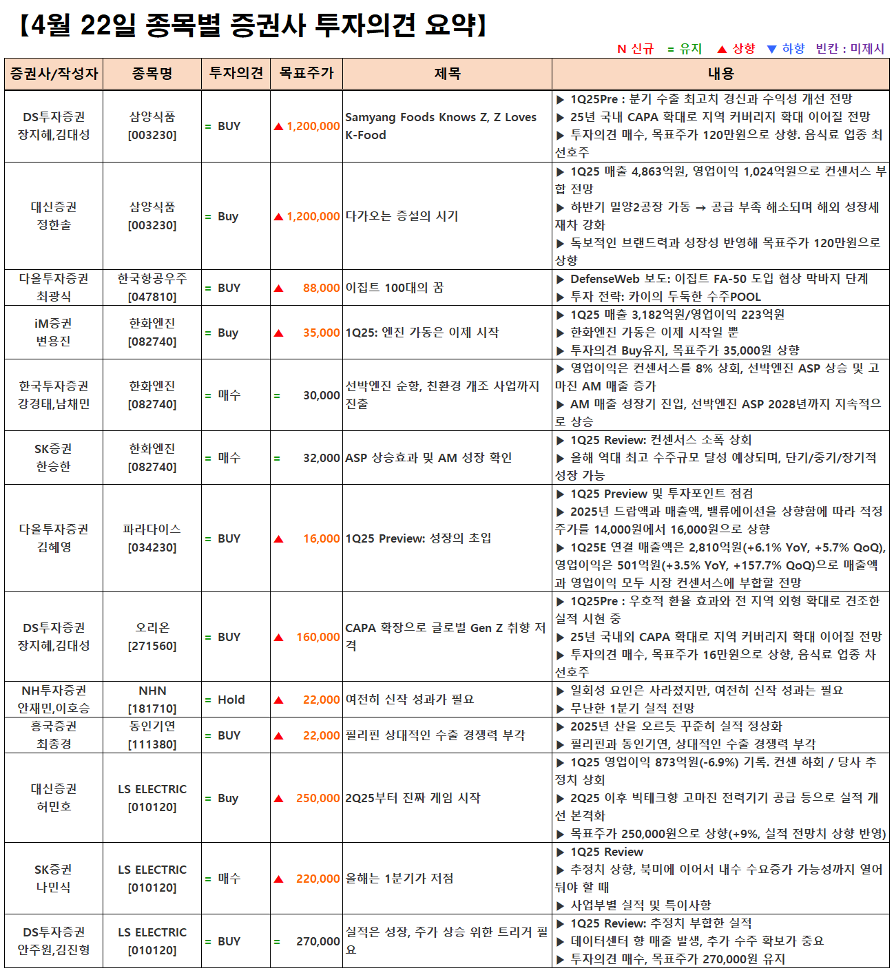 (이미지 내 글자가 잘 보이지 않으면 웹브라우저, 휴대폰 화면을 ‘가로화면’으로 보시거나, 이미지를 클릭하면 확대해서 보실 수 있습니다.) 글 내비게이션 2025년 1분기 실적 특징주(4월 21일 기준) [04.22] 증시 마감시황 및 오늘의 특징주/특징섹터