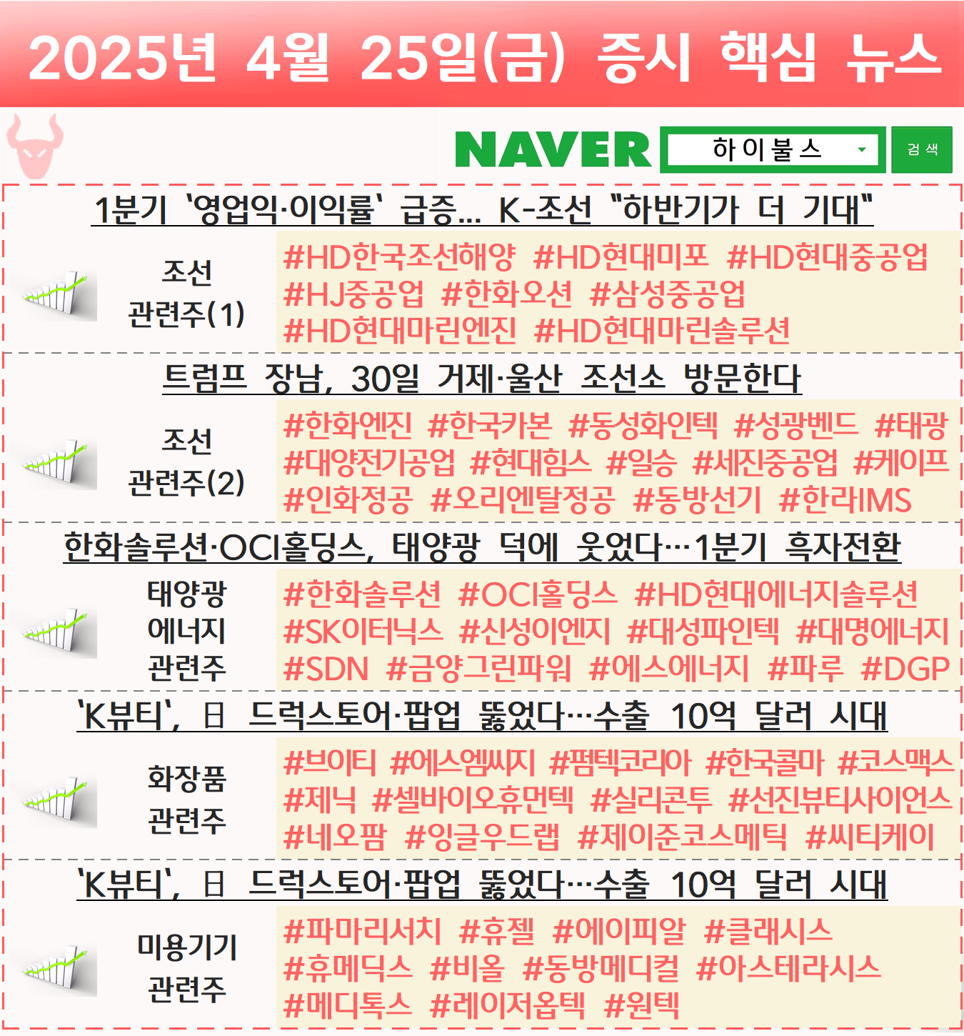 조선 관련주, 조선주, 태양광 관련주, 태양광 에너지 관련주, 화장품 관련주, 미용기기 관련주, K-뷰티 관련주, K뷰티 관련주 글 내비게이션 [04.24] 증시 개장 전 핵심뉴스 하이불스 Pick [04.28] 증시 개장 전 핵심뉴스 하이불스 Pick