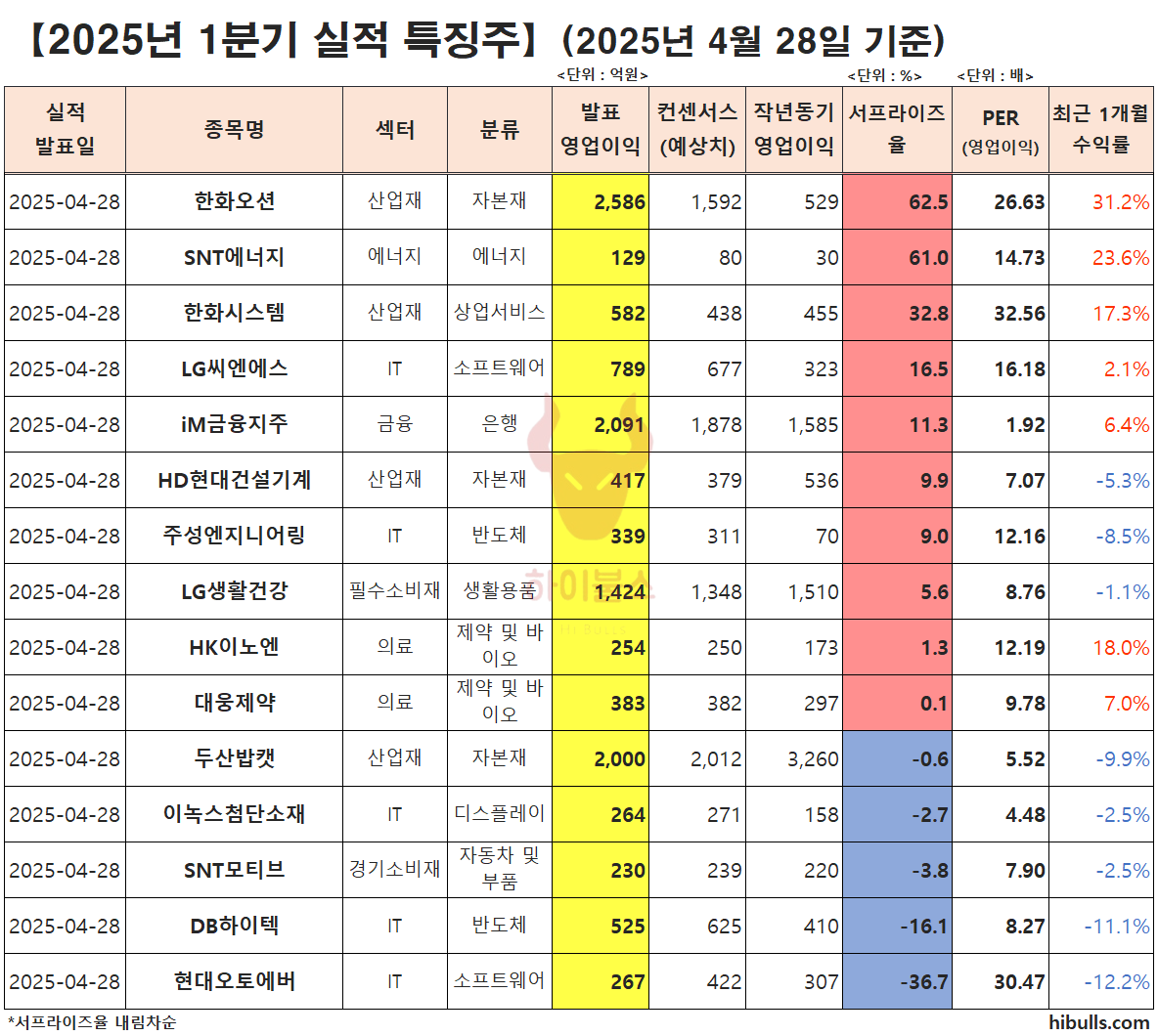 실적 서프라이즈 : 한화오션, SNT에너지, 한화시스템, LG씨엔에스