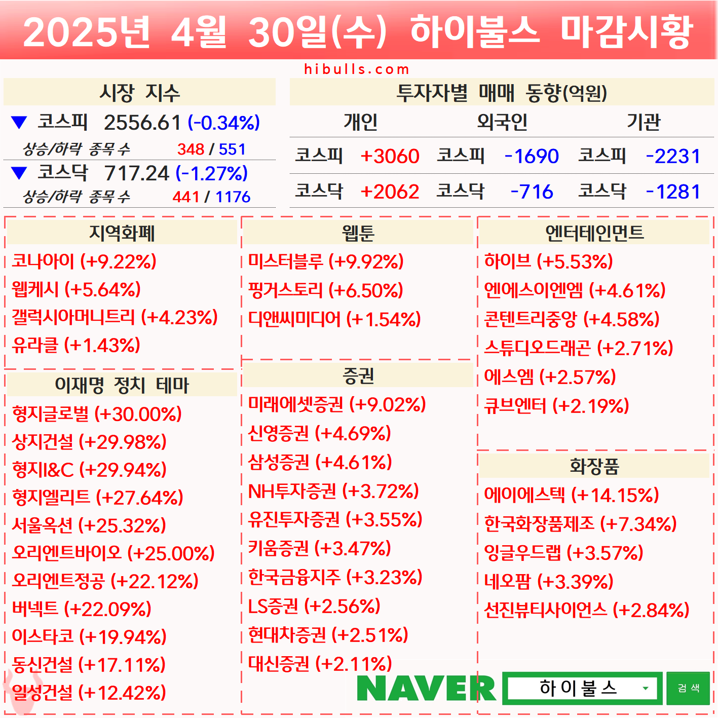 [04.30] 증시 마감시황 및 오늘의 특징주/특징섹터