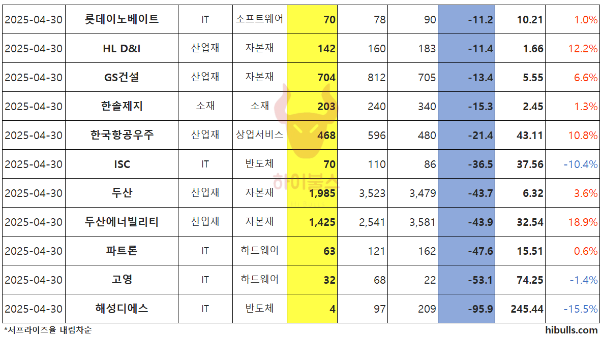 실적 미스 : 롯데이노베이트, HL D&I, GS건설