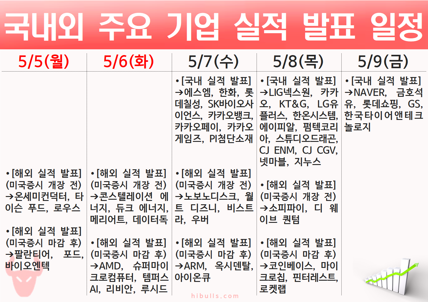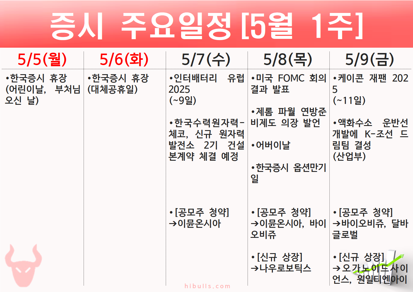 2025년 5월 1주(5.5~5.9) 주간 증시 주요 일정