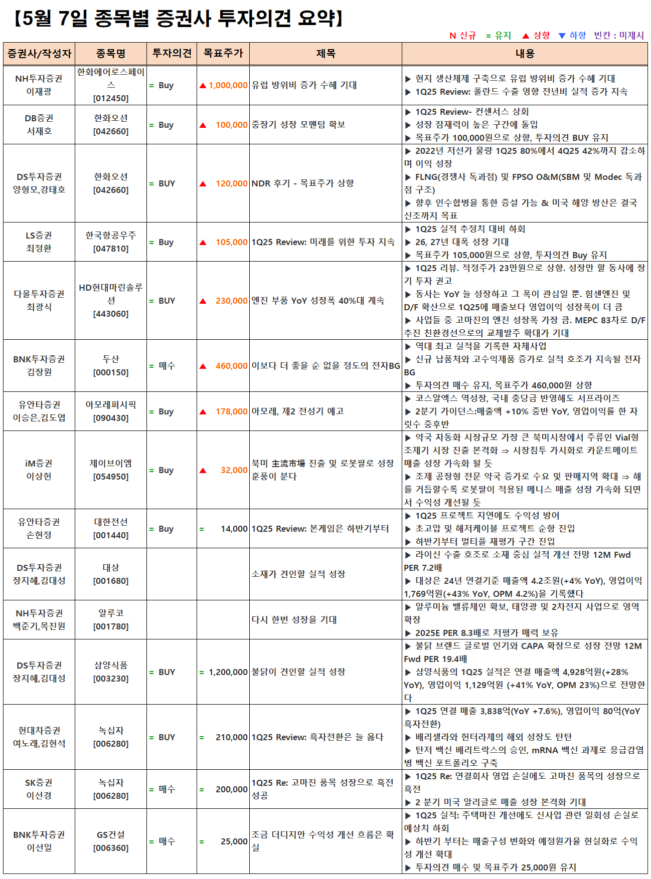 (이미지 내 글자가 잘 보이지 않으면 웹브라우저, 휴대폰 화면을 ‘가로화면’으로 보시거나, 이미지를 클릭하면 확대해서 보실 수 있습니다.) 글 내비게이션 [05.07] 증시 개장 전 시황&오늘의 대응 전략 [05.07] 증시 마감시황 및 오늘의 특징주/특징섹터