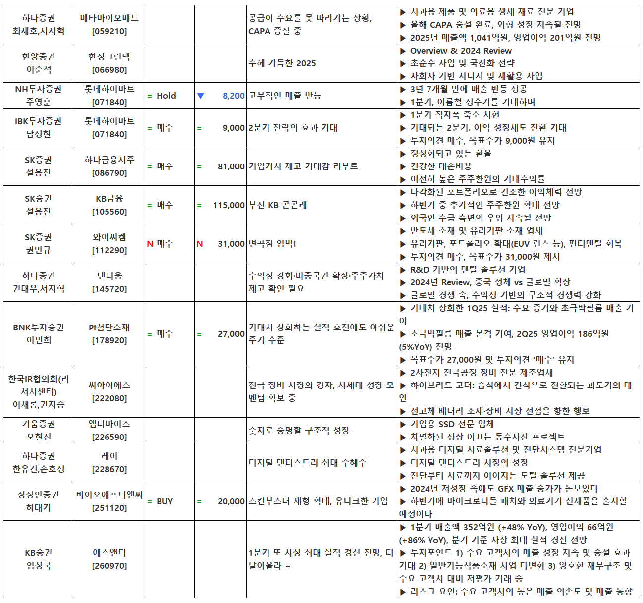 (이미지 내 글자가 잘 보이지 않으면 웹브라우저, 휴대폰 화면을 ‘가로화면’으로 보시거나, 이미지를 클릭하면 확대해서 보실 수 있습니다.) 글 내비게이션 2025년 1분기 실적 특징주(5월 7일 기준) [05.08] 증시 마감시황 및 오늘의 특징주/특징섹터