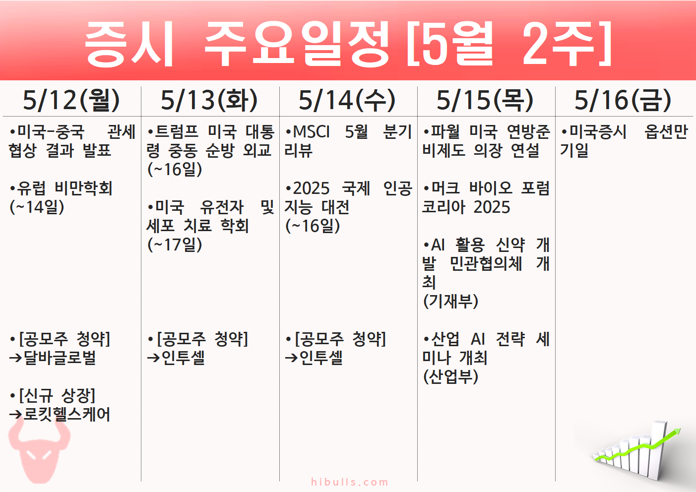 2025년 5월 2주(5.12~5.16) 주간 증시 주요 일정