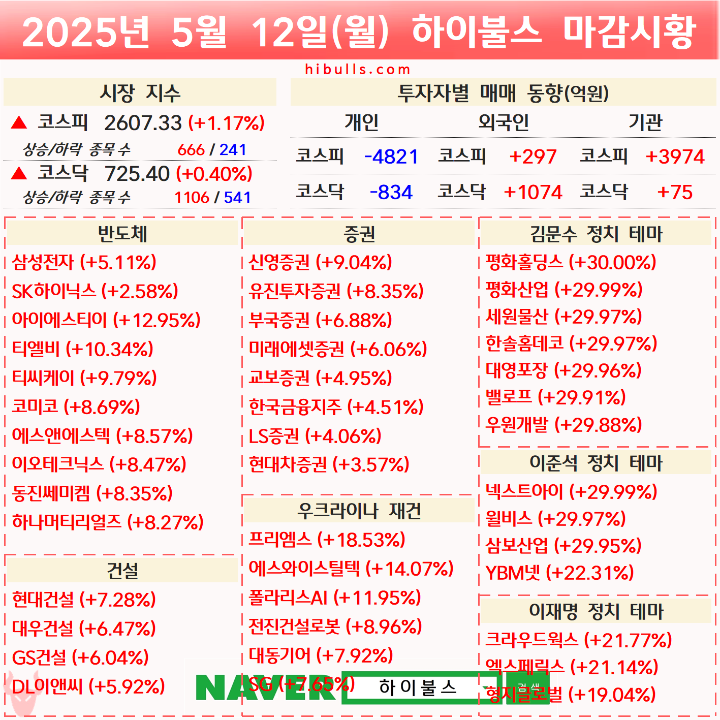 [05.12] 증시 마감시황 및 오늘의 특징주/특징섹터