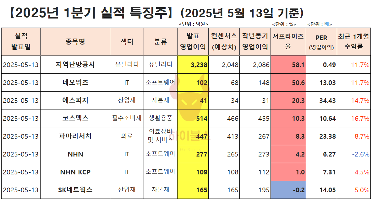 실적 서프라이즈 : 지역난방공사, 네오위즈, 에스피지