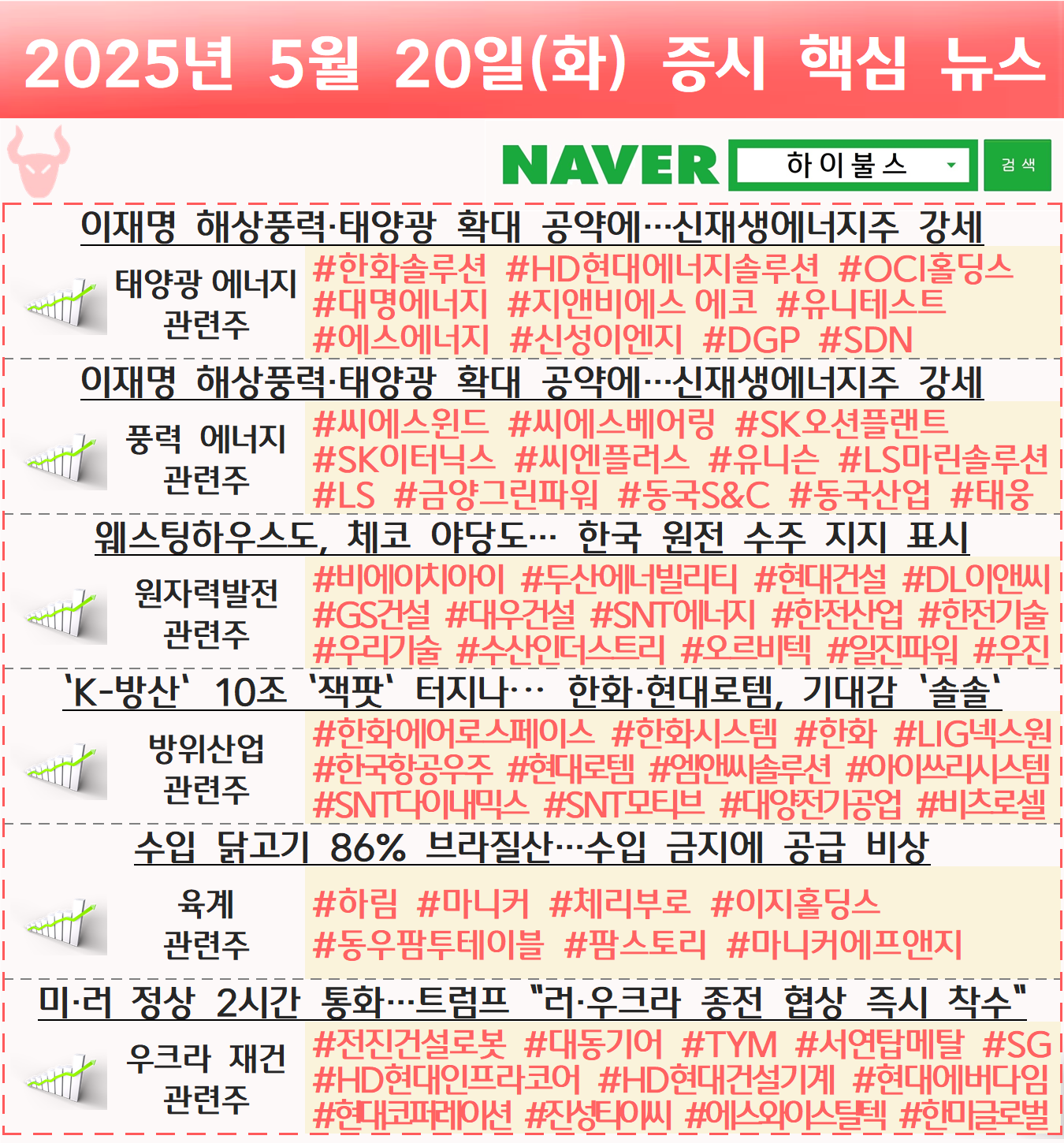 태양광 관련주, 태양광 에너지 관련주, 풍력 관련주, 풍력 에너지 관련주, 원자력발전 관련주, 원전 관련주, 방산 관련주, 방위산업 관련주, 육계 관련주, 닭고기 관련주, 우크라이나 재건 관련주, 우크라이나 종전 관련주, 우크라 재건 관련주, 우크라 종전 관련주