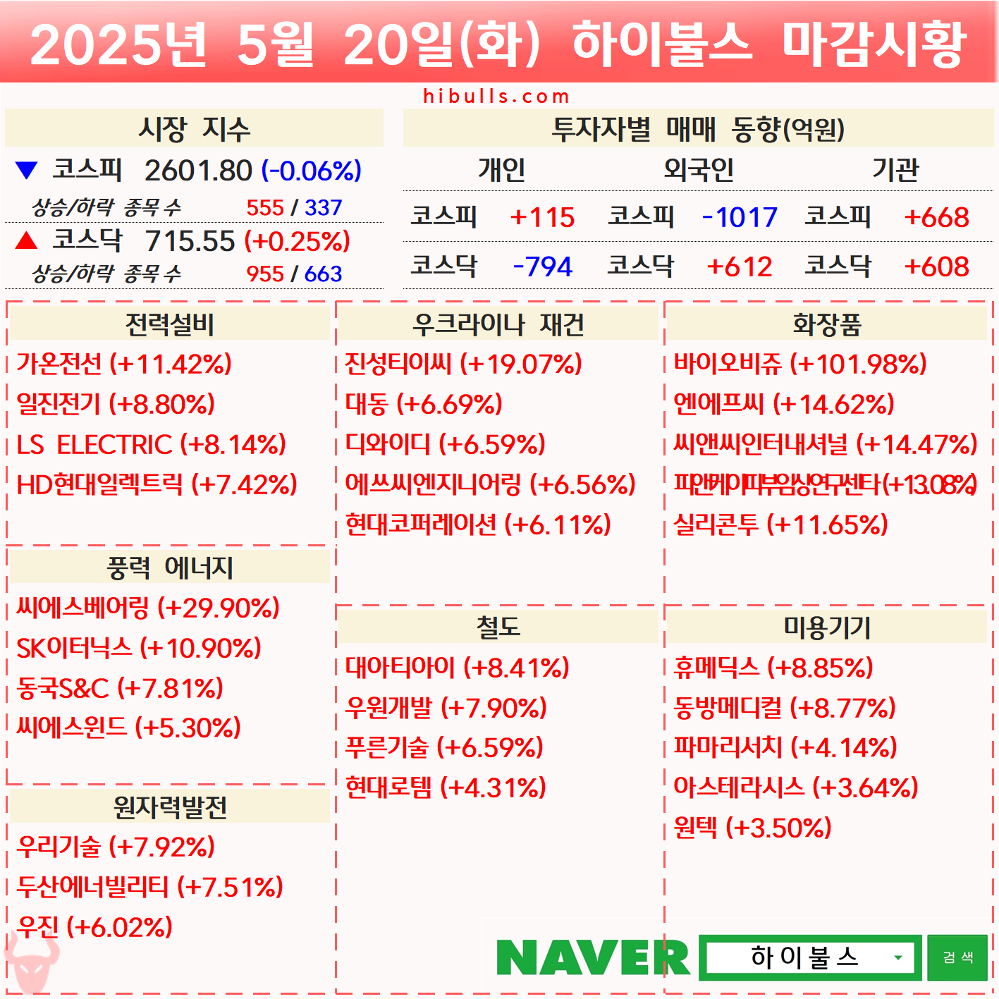 [05.20] 증시 마감시황 및 오늘의 특징주/특징섹터