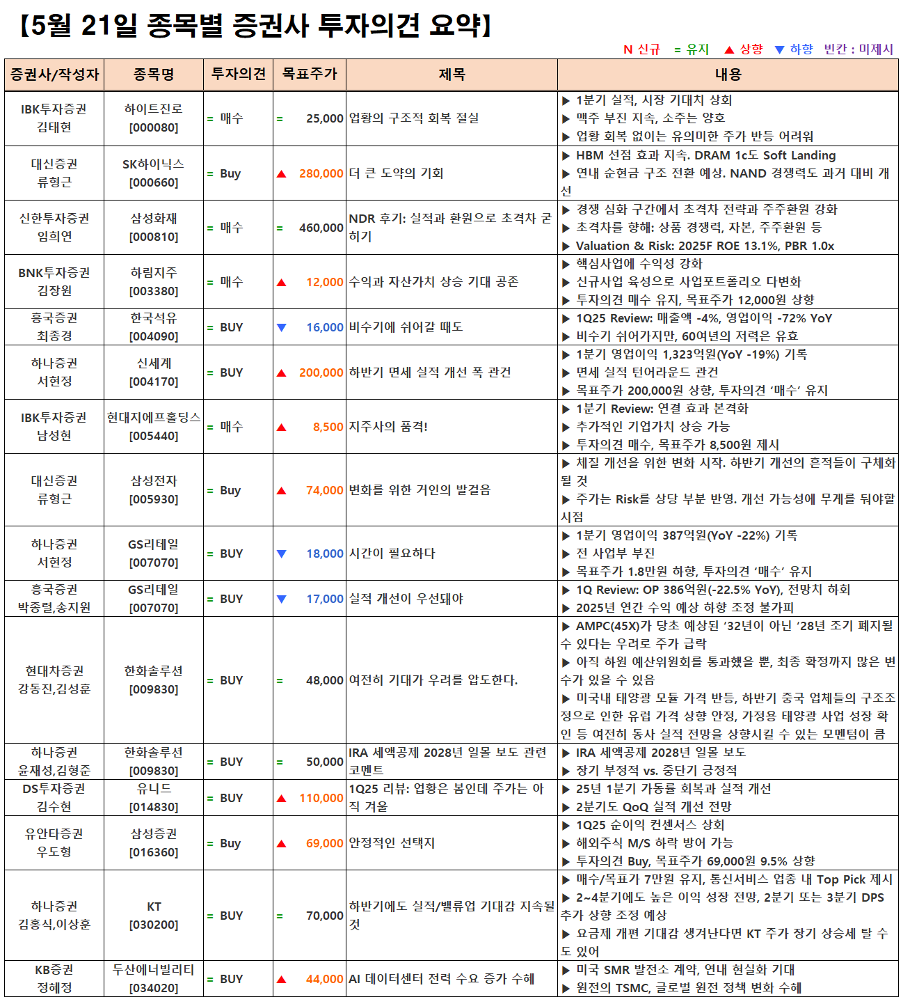 (이미지 내 글자가 잘 보이지 않으면 웹브라우저, 휴대폰 화면을 ‘가로화면’으로 보시거나, 이미지를 클릭하면 확대해서 보실 수 있습니다.) 글 내비게이션 [05.21] 증시 개장 전 시황&오늘의 대응 전략 [05.21] 증시 마감시황 및 오늘의 특징주/특징섹터