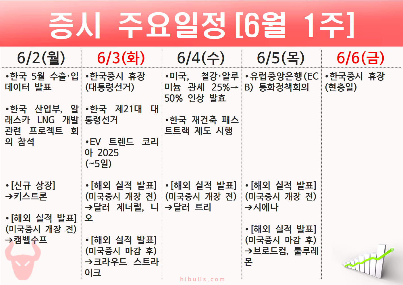 2025년 6월 1주(6.2~6.6) 주간 증시 주요 일정