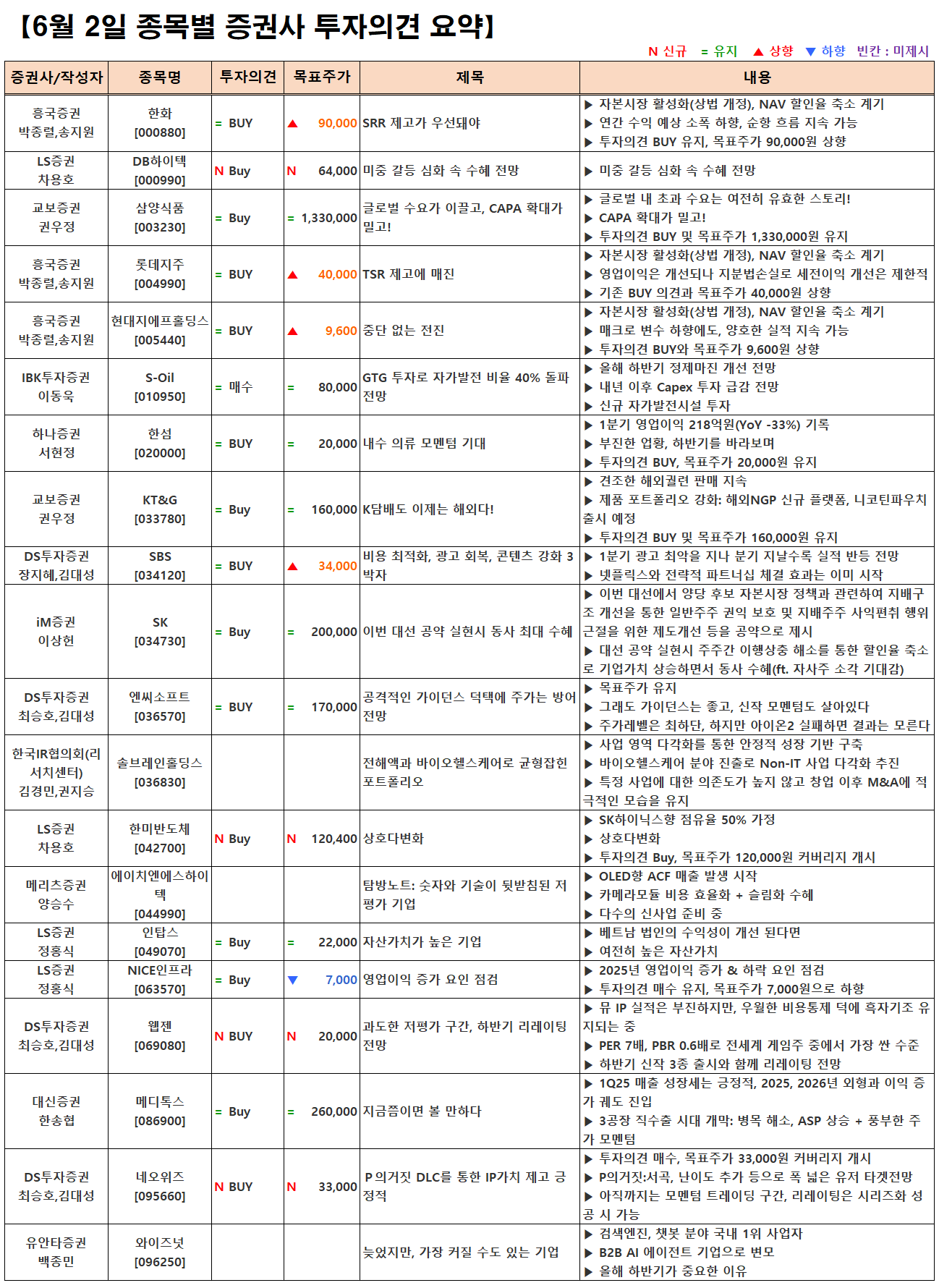 (이미지 내 글자가 잘 보이지 않으면 웹브라우저, 휴대폰 화면을 ‘가로화면’으로 보시거나, 이미지를 클릭하면 확대해서 보실 수 있습니다.) 글 내비게이션 [06.02] 증시 개장 전 시황&오늘의 대응 전략 [06.02] 증시 마감시황 및 오늘의 특징주/특징섹터