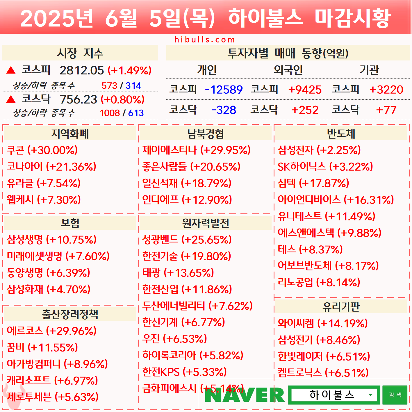 [06.05] 증시 마감시황 및 오늘의 특징주/특징섹터