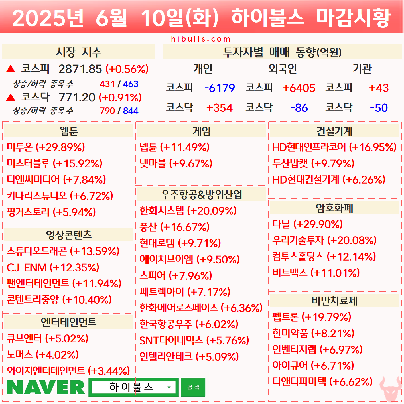 [06.10] 증시 마감시황 및 오늘의 특징주/특징섹터