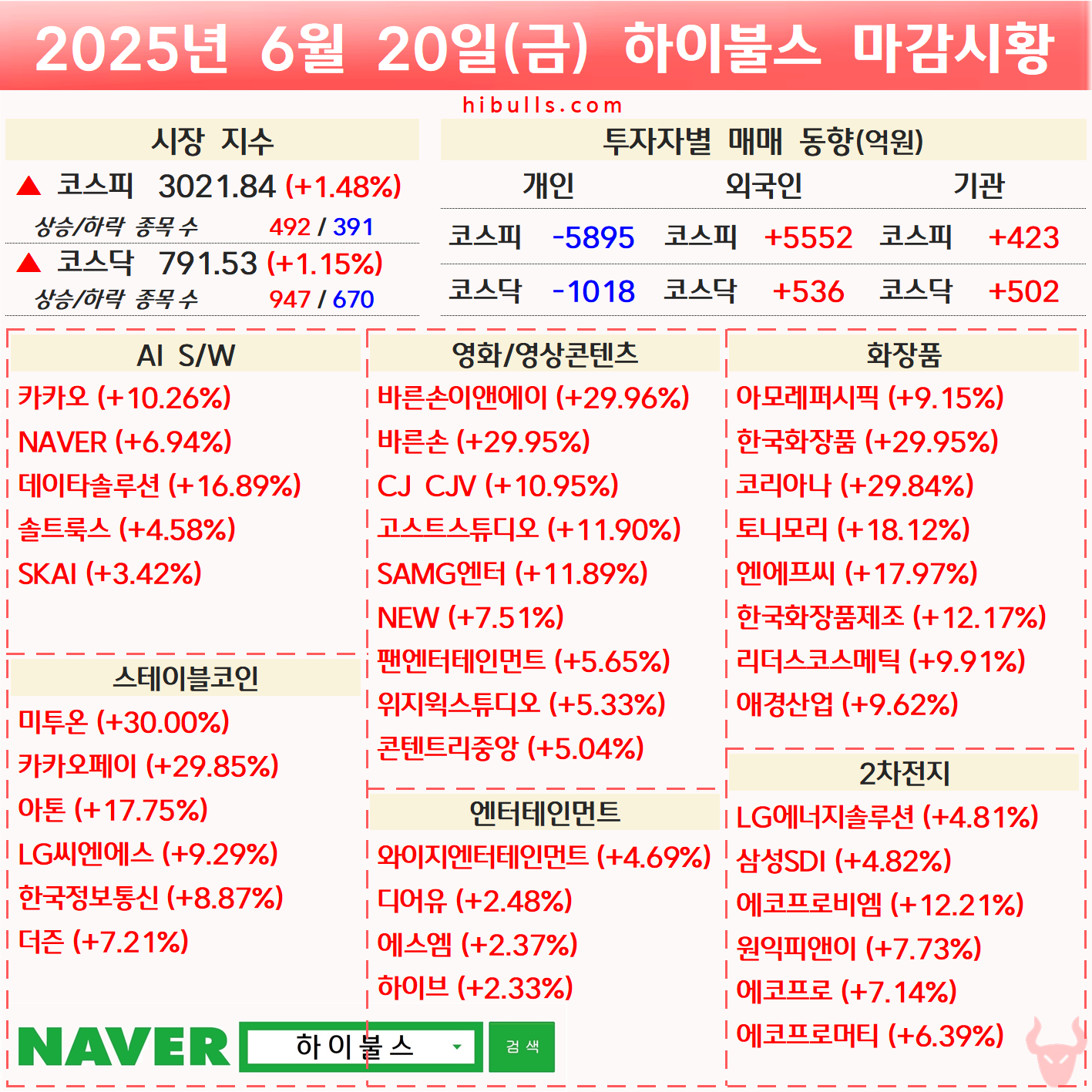 [06.20] 증시 마감시황 및 오늘의 특징주/특징섹터