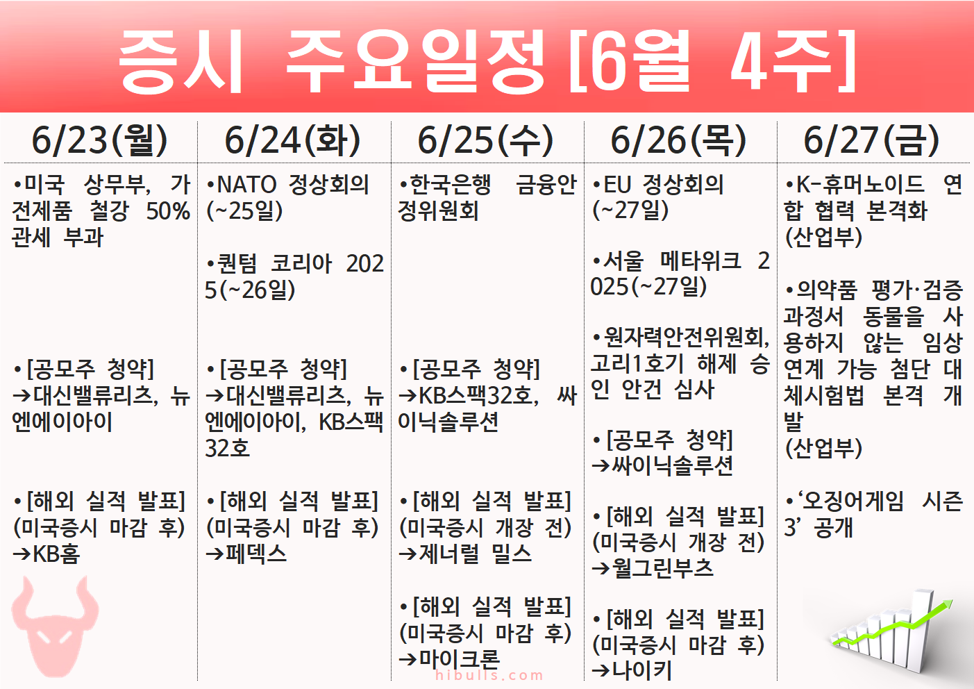 2025년 6월 4주(6.23~6.27) 주간 증시 주요 일정