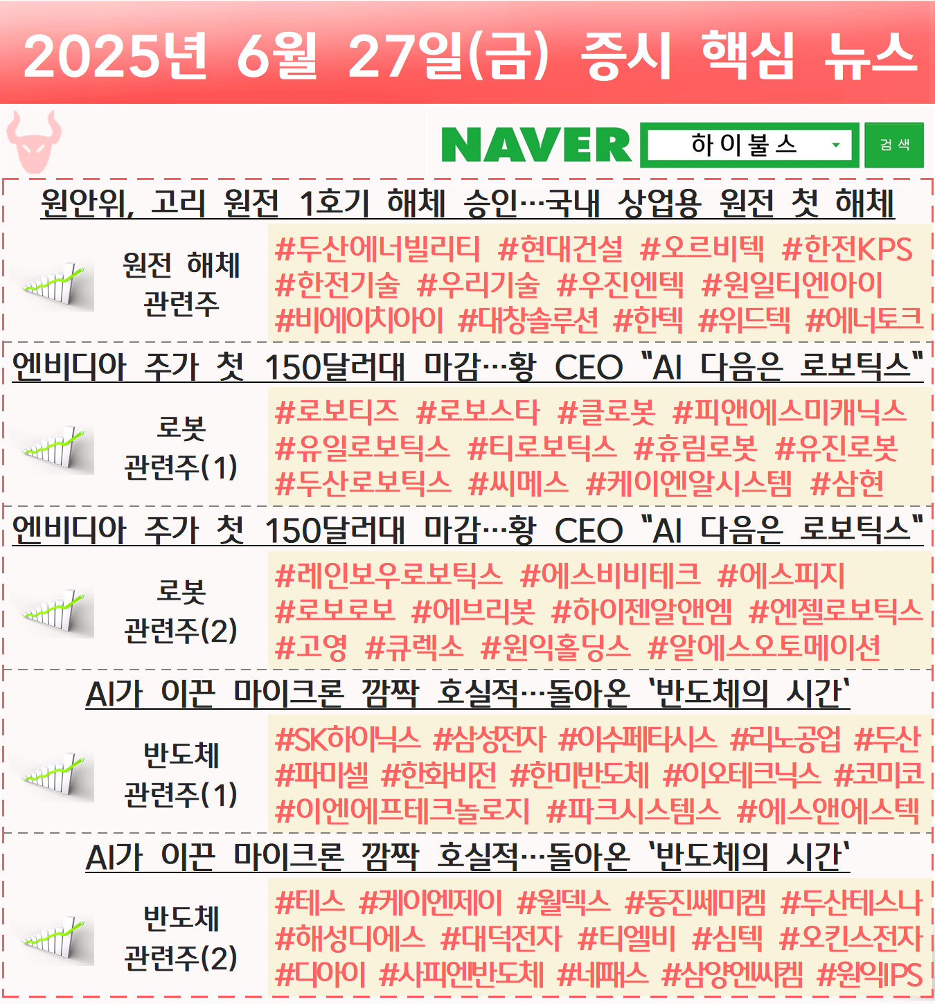 원전 관련주, 원자력발전 관련주, 원전 해체 관련주, 로봇 관련주, 반도체 관련주 글 내비게이션 [06.26] 증시 개장 전 핵심뉴스 하이불스 Pick [06.30] 증시 개장 전 핵심뉴스 하이불스 Pick
