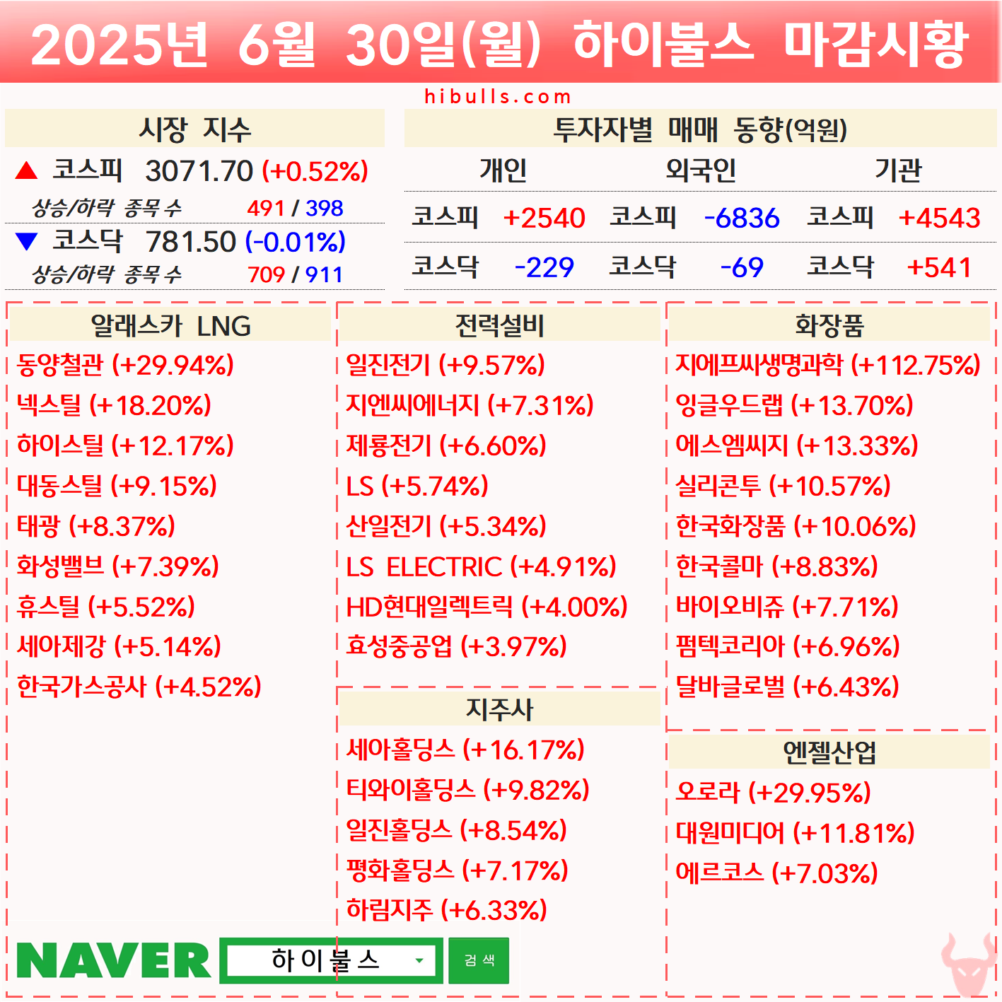[06.30] 증시 마감시황 및 오늘의 특징주/특징섹터