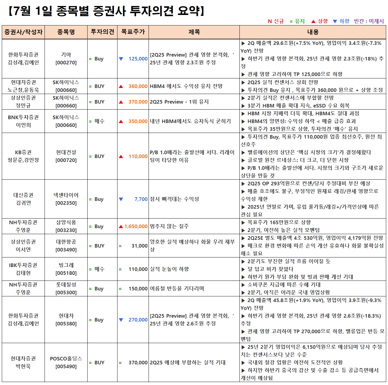 (이미지 내 글자가 잘 보이지 않으면 웹브라우저, 휴대폰 화면을 ‘가로화면’으로 보시거나, 이미지를 클릭하면 확대해서 보실 수 있습니다.) 글 내비게이션 [07.01] 증시 개장 전 시황&오늘의 대응 전략 [07.01] 증시 마감시황 및 오늘의 특징주/특징섹터