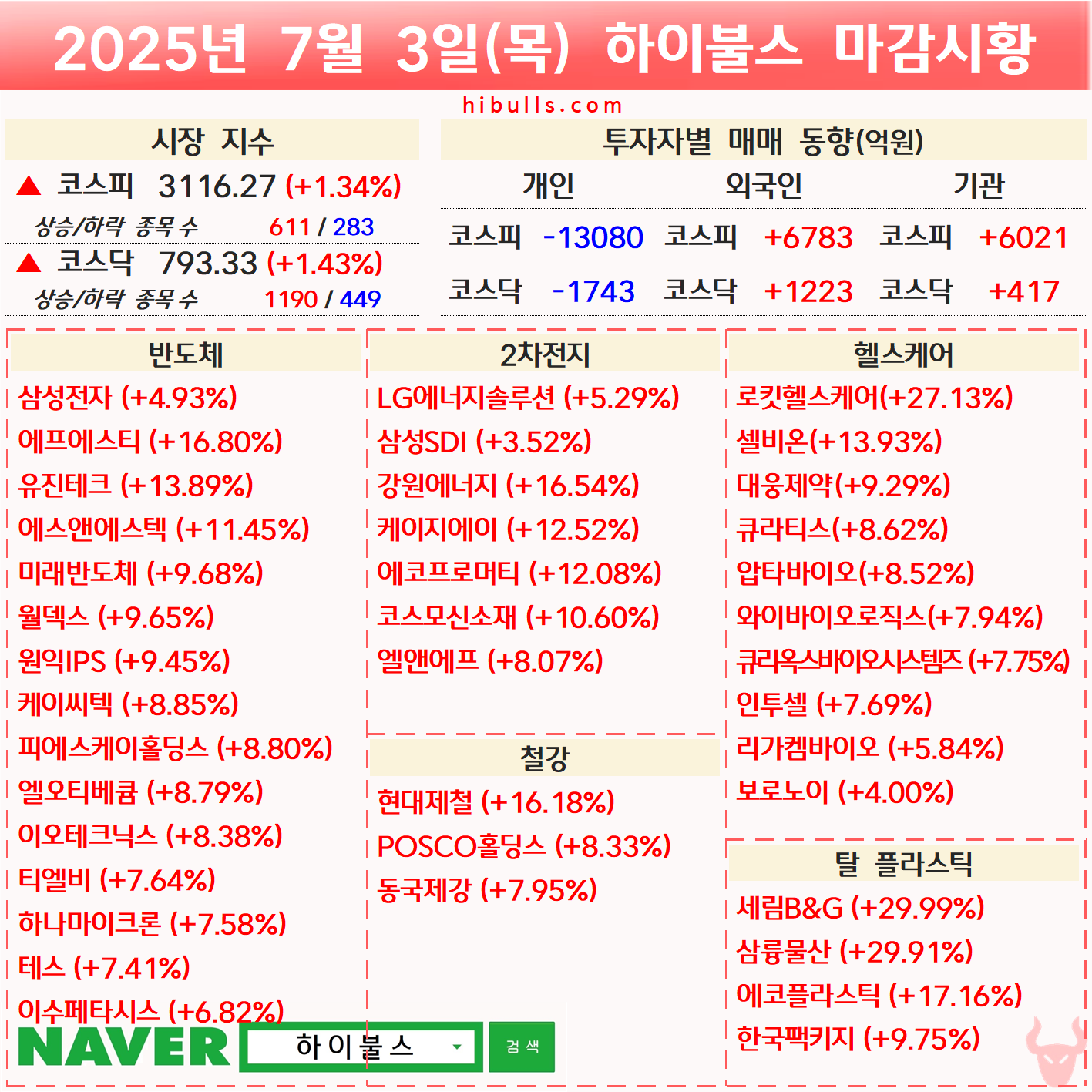 [07.03] 증시 마감시황 및 오늘의 특징주/특징섹터