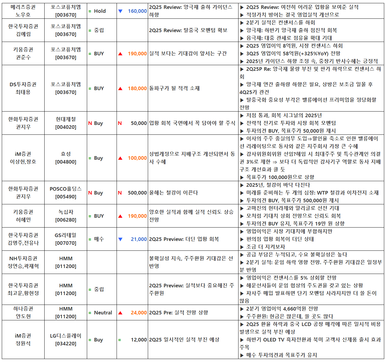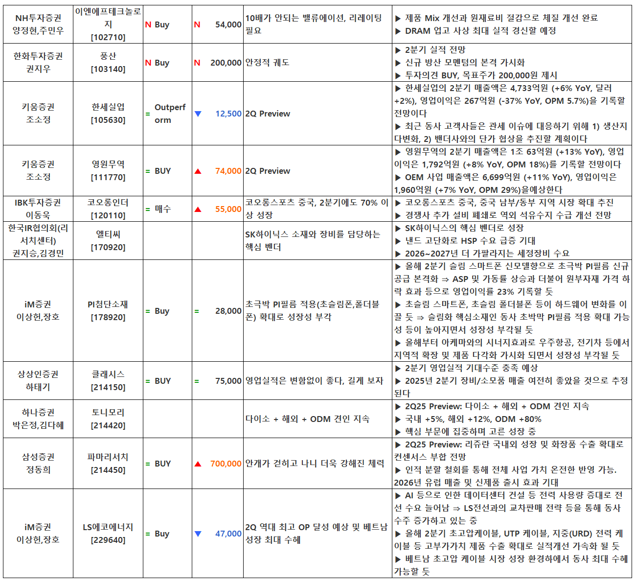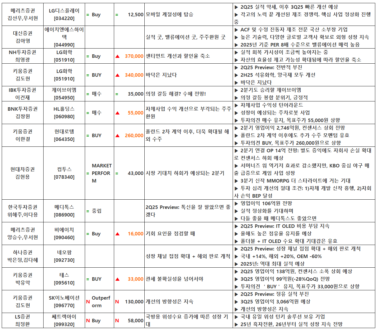 (이미지 내 글자가 잘 보이지 않으면 웹브라우저, 휴대폰 화면을 ‘가로화면’으로 보시거나, 이미지를 클릭하면 확대해서 보실 수 있습니다.) 글 내비게이션 2025년 2분기 실적 특징주(7월 18일 기준) [07.21] 증시 마감시황 및 오늘의 특징주/특징섹터