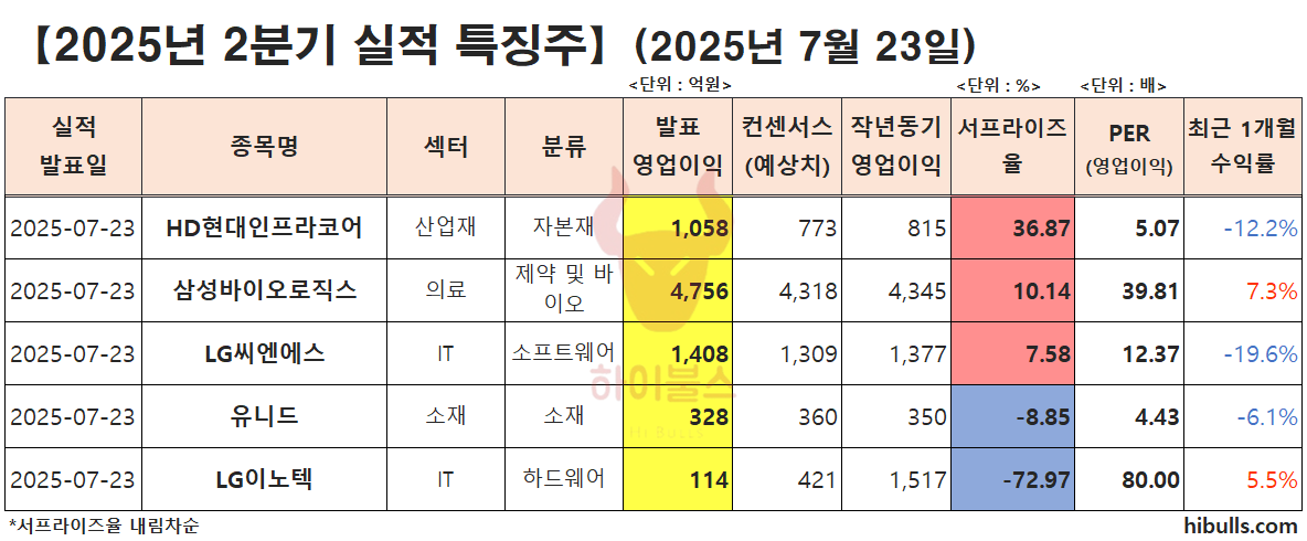 실적 서프라이즈 : HD현대인프라코어 실적 부합 : 삼성바이오로직스, LG씨엔에스, 유니드 실적 쇼크 : LG이노텍 글 내비게이션 [07.24] 증시 개장 전 시황&오늘의 대응 전략 [07.24] 종목별 증권사 투자의견 요약