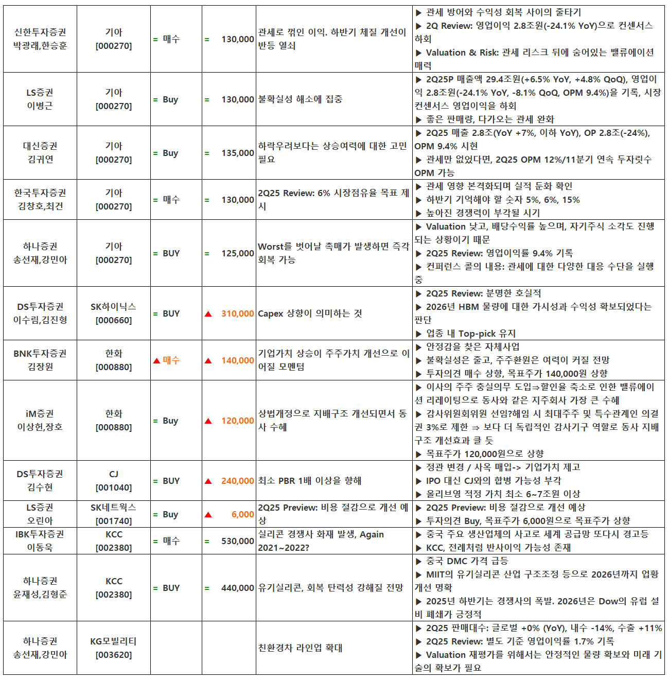(이미지 내 글자가 잘 보이지 않으면 웹브라우저, 휴대폰 화면을 ‘가로화면’으로 보시거나, 이미지를 클릭하면 확대해서 보실 수 있습니다.) 글 내비게이션 2025년 2분기 실적 특징주(7월 25일 기준) [07.28] 증시 마감시황 및 오늘의 특징주/특징섹터