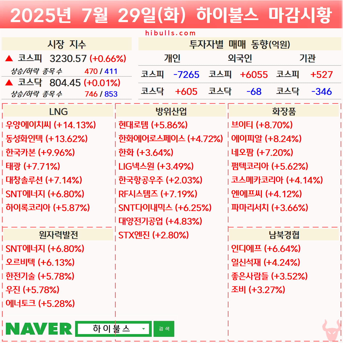 [07.29] 증시 마감시황 및 오늘의 특징주/특징섹터