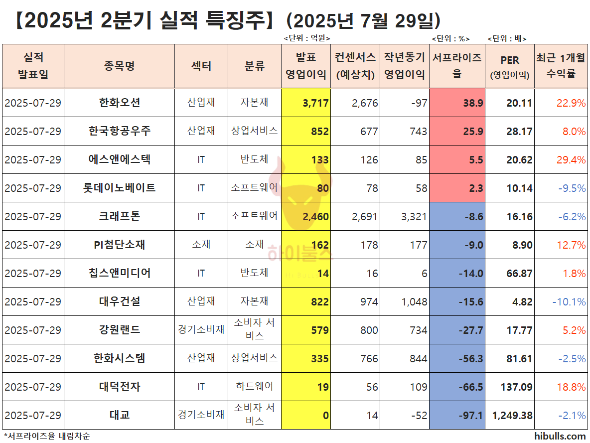 실적 쇼크 : 강원랜드, 한화시스템, 대덕전자, 대교