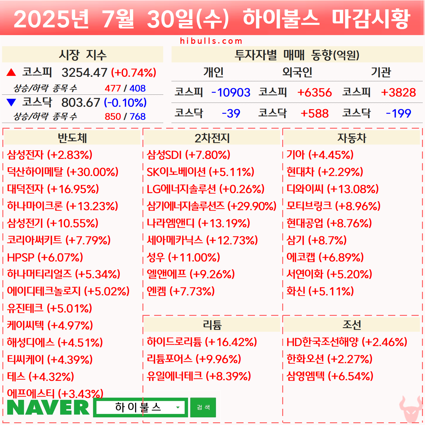 [07.30] 증시 마감시황 및 오늘의 특징주/특징섹터