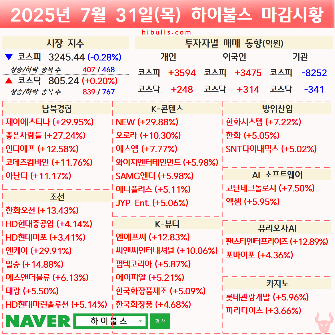 [07.31] 증시 마감시황 및 오늘의 특징주/특징섹터