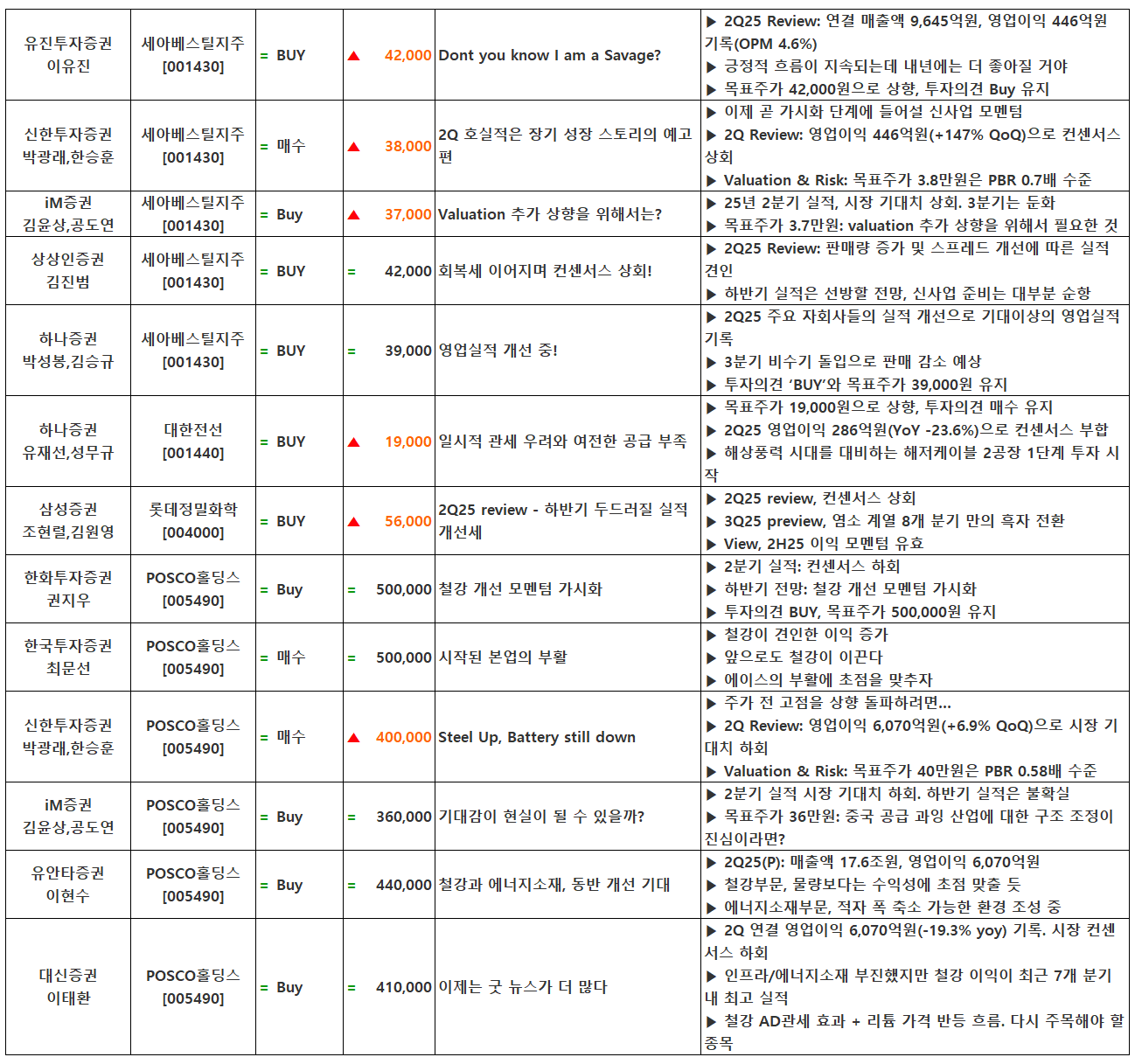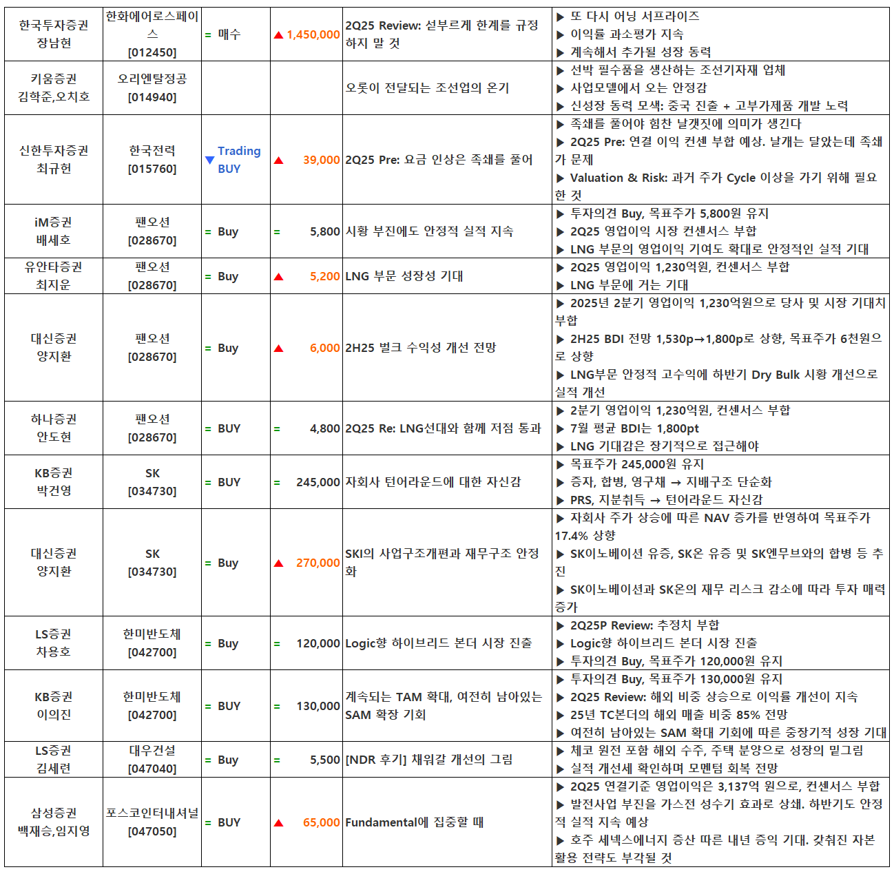 (이미지 내 글자가 잘 보이지 않으면 웹브라우저, 휴대폰 화면을 ‘가로화면’으로 보시거나, 이미지를 클릭하면 확대해서 보실 수 있습니다.) 글 내비게이션 2025년 2분기 실적 특징주(7월 31일 기준) [08.01] 증시 마감시황 및 오늘의 특징주/특징섹터