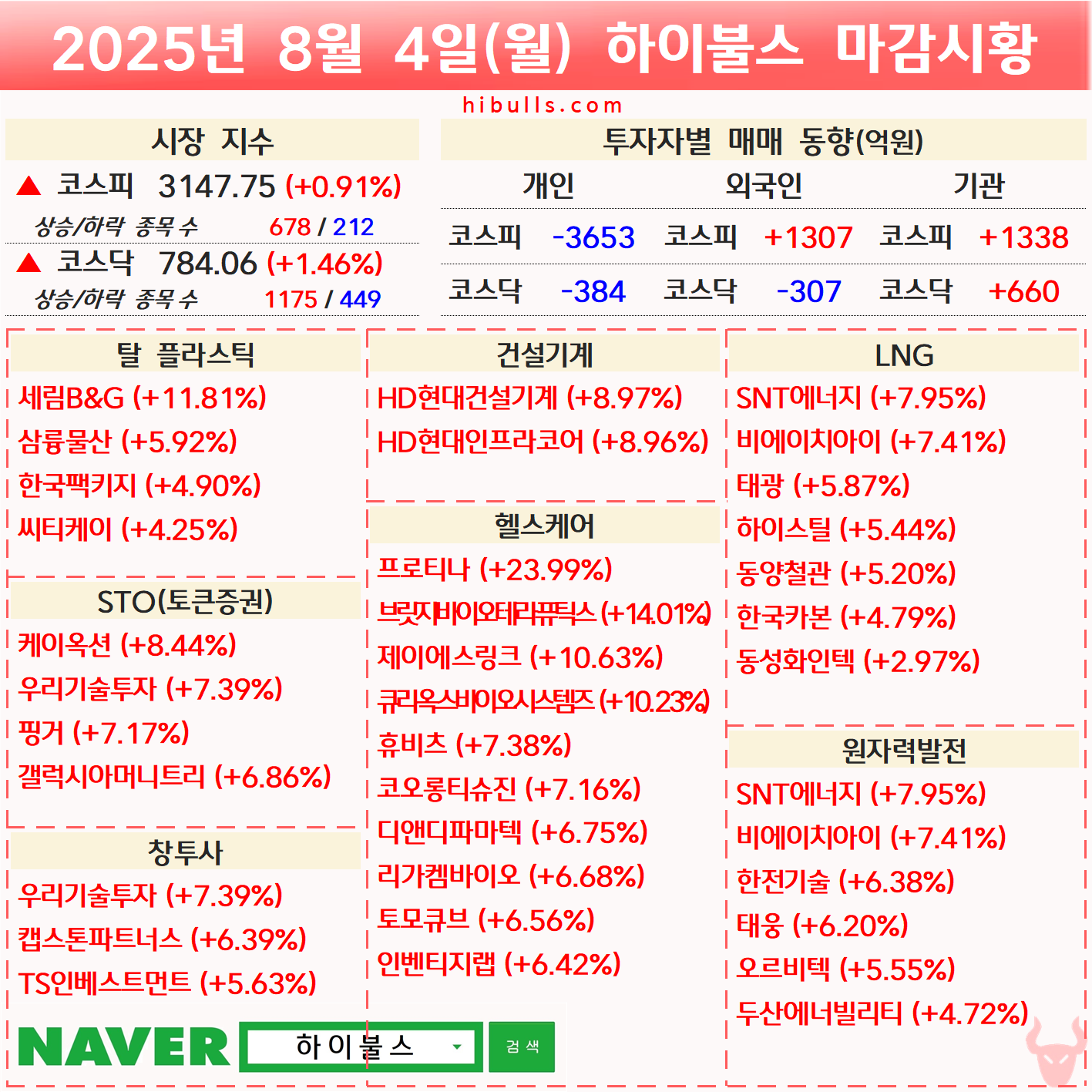 [08.04] 증시 마감시황 및 오늘의 특징주/특징섹터