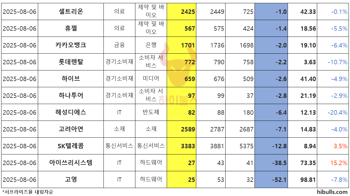 실적 부합 : 산일전기, 현대백화점, 현대홈쇼핑, 코미코, 코오롱ENP, 파크시스템스, 셀트리온, 휴젤, 카카오뱅크, 롯데렌탈, 하이브, 하나투어, 해성디에스, 고려아연