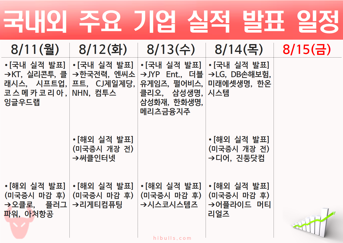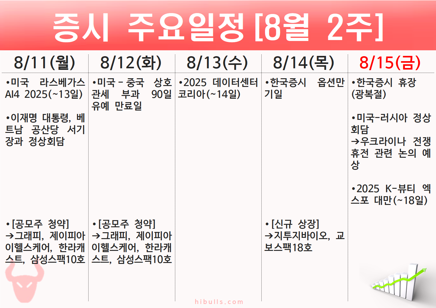 2025년 8월 2주(8.11~8.15) 주간 증시 주요 일정