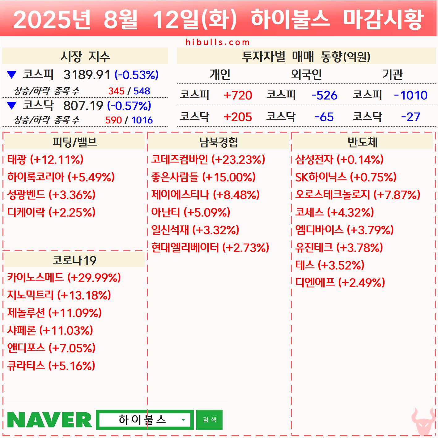 [08.12] 증시 마감시황 및 오늘의 특징주/특징섹터