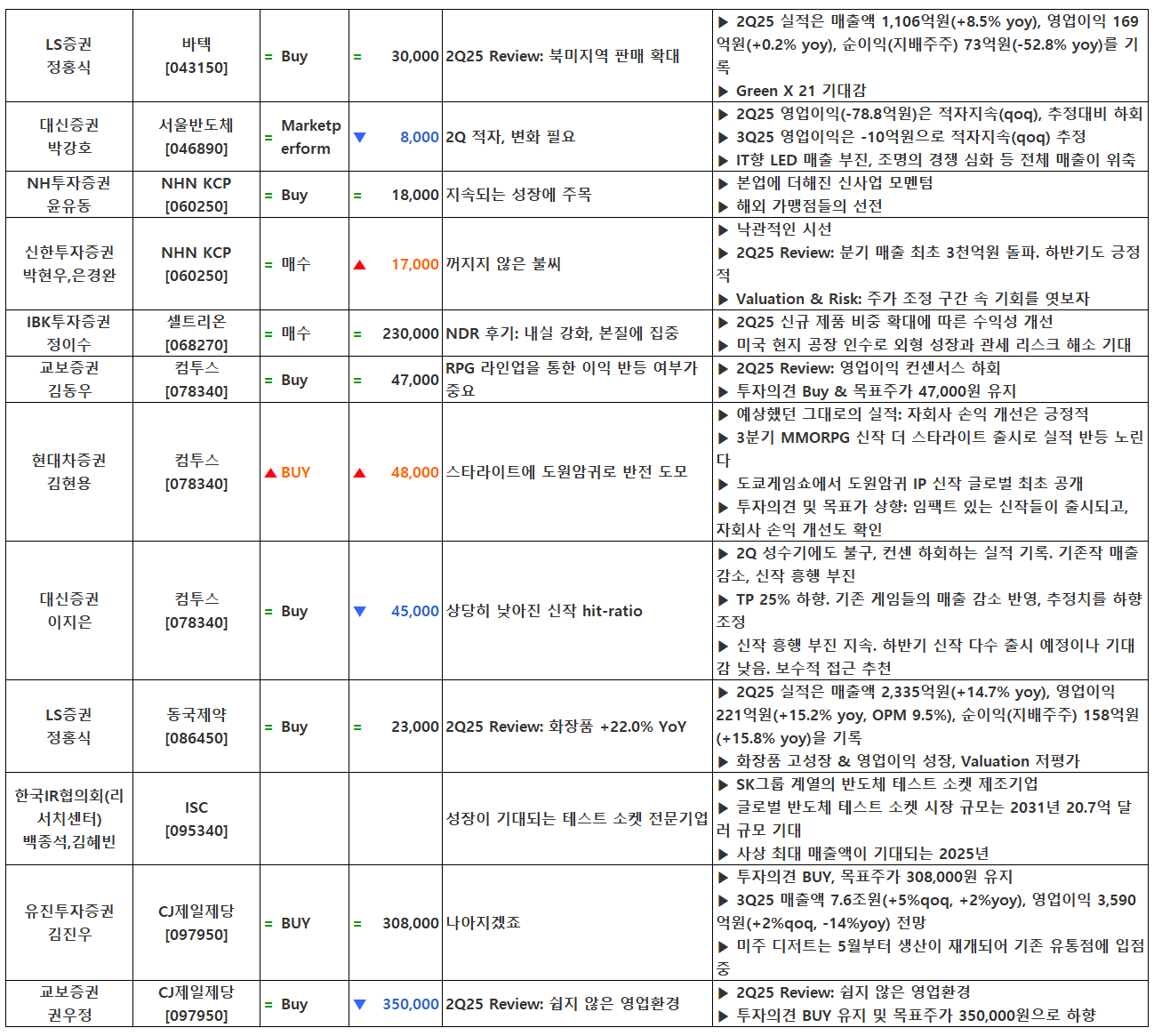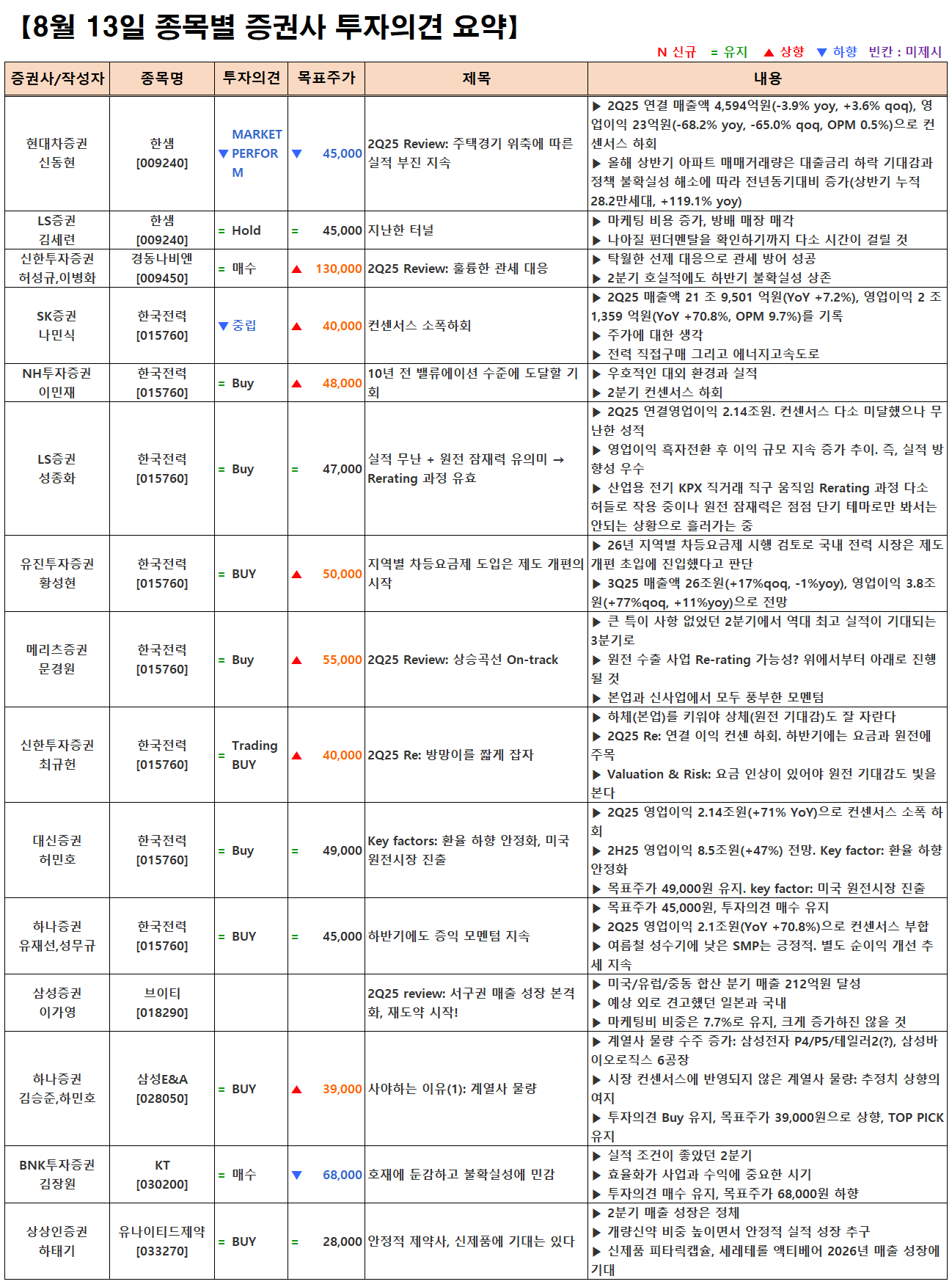 (이미지 내 글자가 잘 보이지 않으면 웹브라우저, 휴대폰 화면을 ‘가로화면’으로 보시거나, 이미지를 클릭하면 확대해서 보실 수 있습니다.) 글 내비게이션 2025년 2분기 실적 특징주(8월 12일) [08.13] 증시 마감시황 및 오늘의 특징주/특징섹터